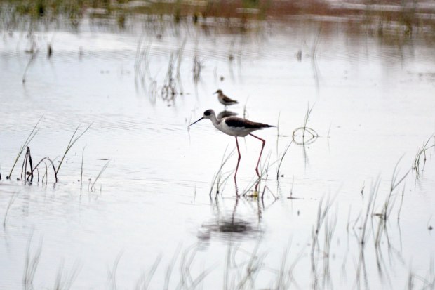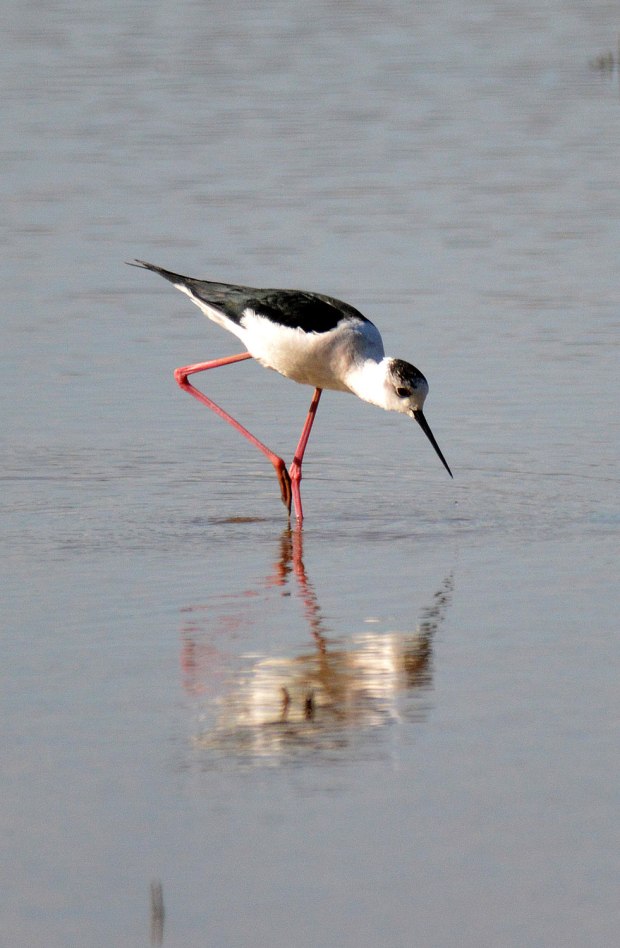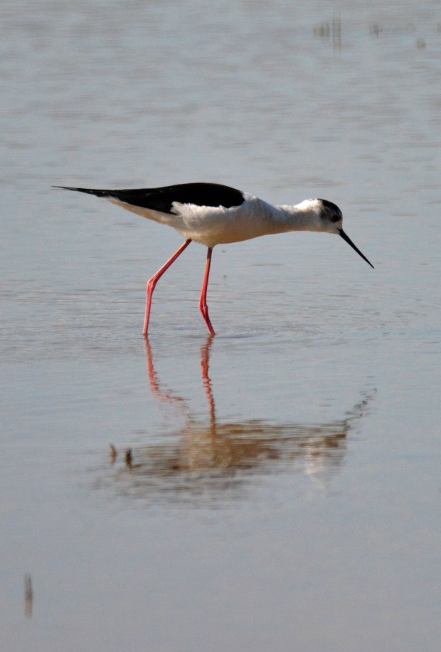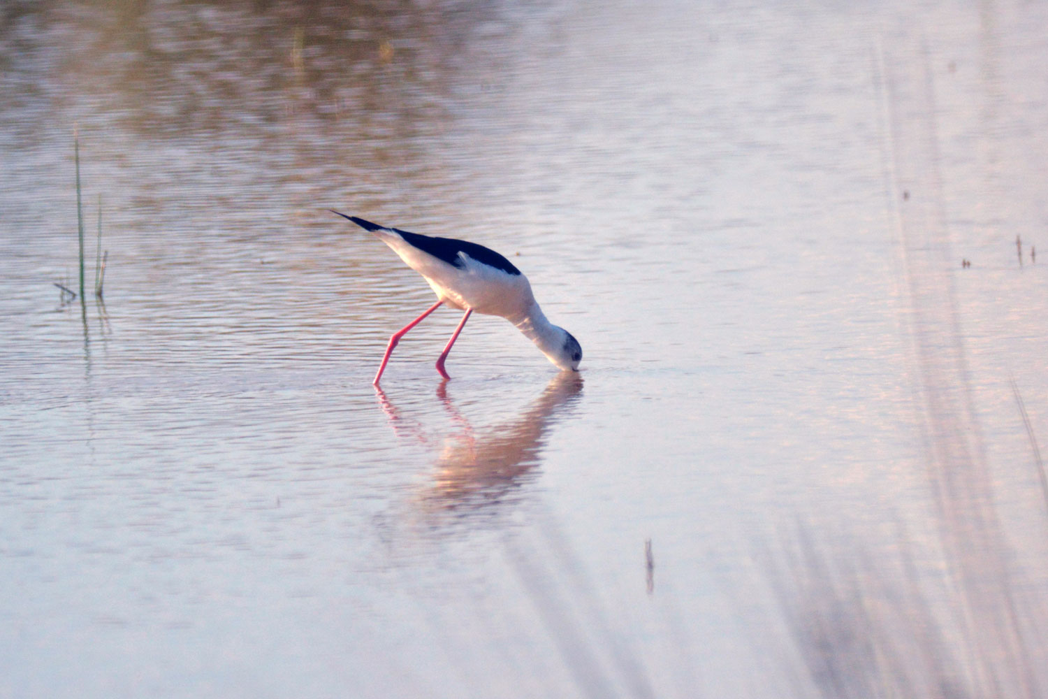 La cigüeñuela común (Himantopus himantopus) tene un aspecto peculiar. Es un ave de humedal inconfundible por su plumaje blanco y negro, su pico largo y delgado, y sus piernecitas largas y rosadas. A mí me recuerda a una bailarina de ballet clásico con su tutú. La cigüeñuela forma parte de la estampa de las zonas húmedas. En la primera imagen se la puede ver en su tránsito habitual y diario. Se desplaza con delicadeza sobre lagunas poco profundas buscando alimento en el limo. Es un ave limícola. Es un ave zancuda. Es un ave bonita y simpática.