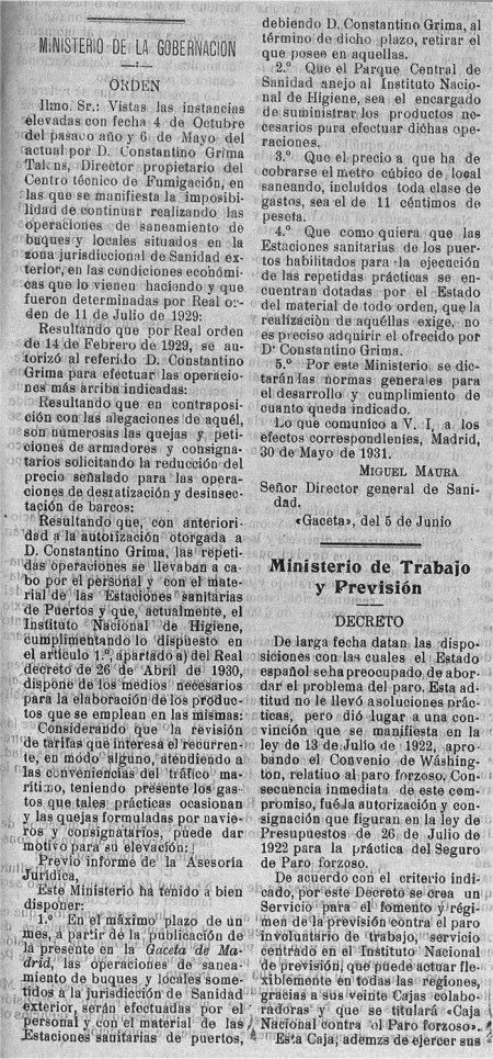 Fig 26. Orden del Ministerio de la Gobernación de 12 de junio de 1931.