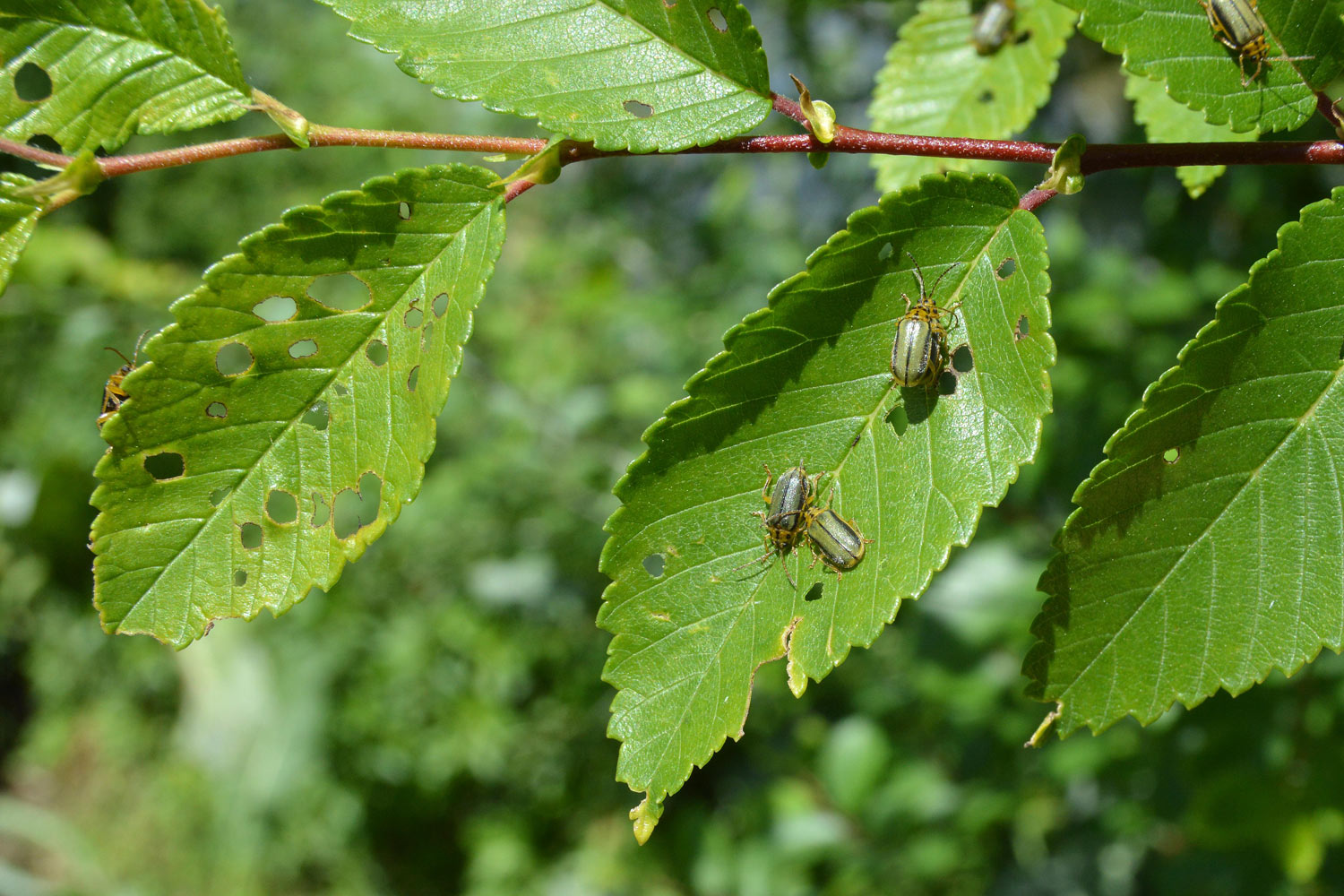 Fig 18. Daños por galeruca del olmo (Xanthogaleruca luteola) en el verano de 2020./ C. Pradera 08-2020