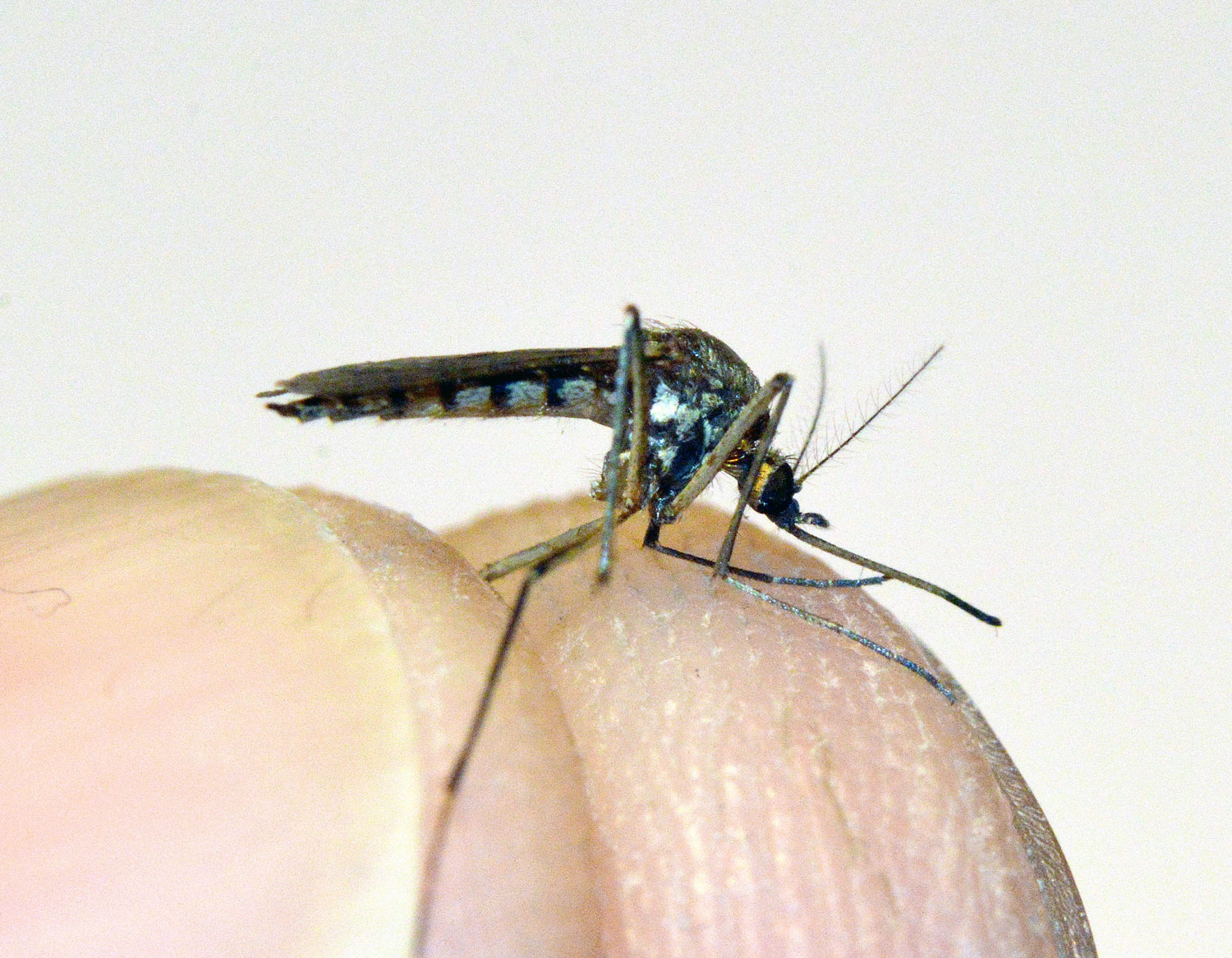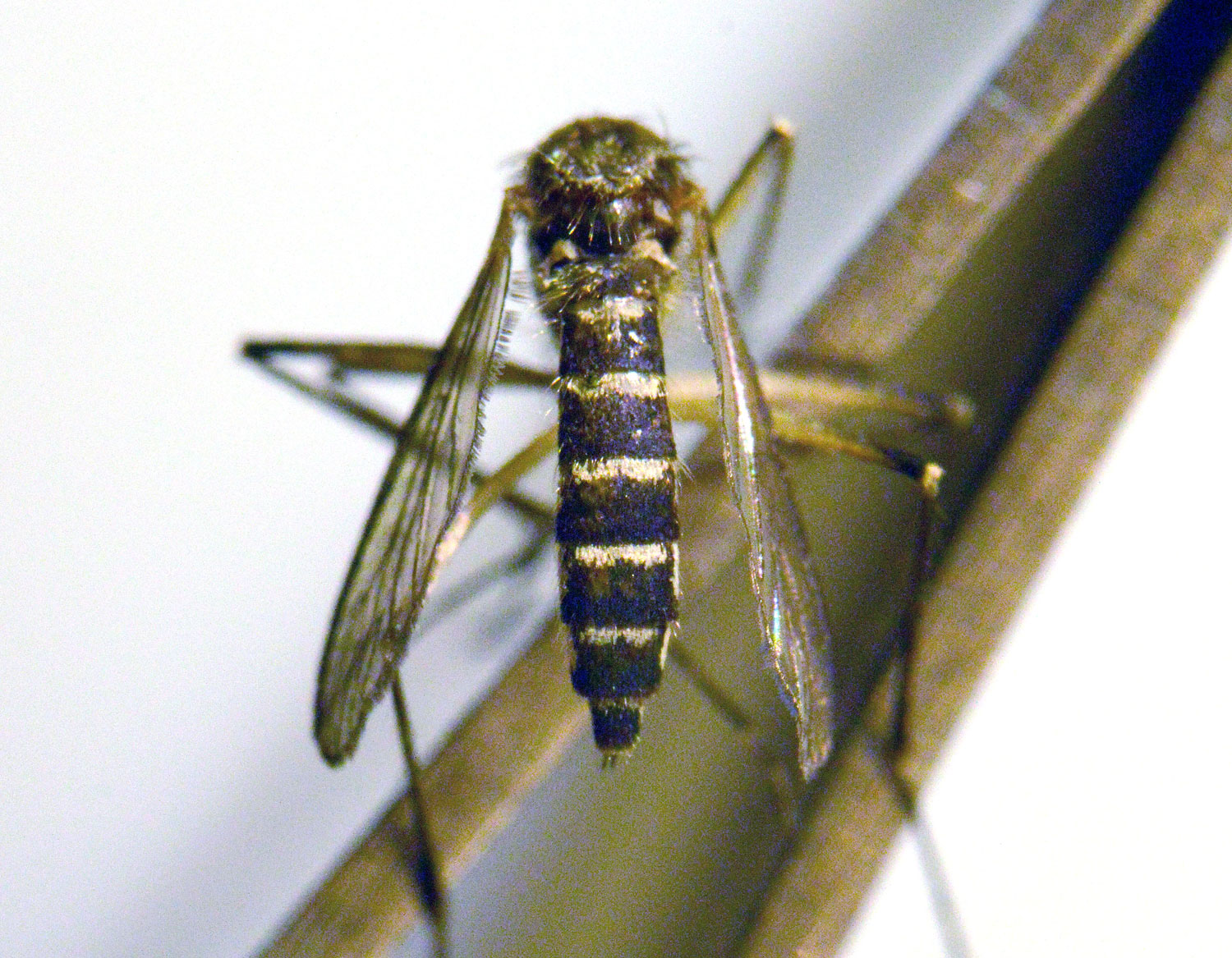 Al observarlo de cerca, me di cuenta de que este mosquito no lo tenía estudiado. Me pareció un mosquito del género Aedes. Al estar en una zona de montaña, pensé en el mosquito Aedes geniculatus. Pero no lo era. Tenía que ser otro mosquito de montaña. Y en esta zona de la Península Ibérica, otro mosquito del mismo género que también se puede encontrar en zona montañosa es Aedes vexans. Al llegar a casa, confirmé con la lupa binocular que se trataba efectivamente de este mosquito. Y pude consultar registros de esta especie para las Gavarras [1]. Se trata de una especie muy interesante.