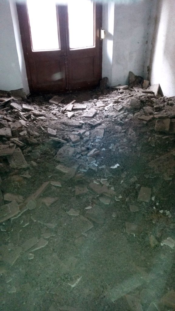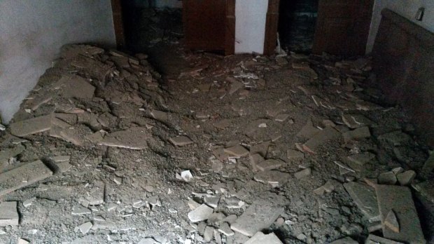 Las palomas se habían instalado entre el forjado del techo de la vivienda y el forjado de la cubierta transitable, es decir, del terrado. Este espacio vacío, típico de los edificios antiguos de Barcelona, recibe el nombre de cámara de aire. Se encuentra ventilado gracias a unas aperturas que dan al exterior y que sirvió para que se instalaran las palomas. En las imágenes 2 y 3, se puede ver la cámara de aire entre los dos forjados. En el resto de imágenes de esta entrada, se puede ver detalle de las principales zonas afectadas de la vivienda que son las habitaciones que dan a la calle. Se pueden ver los escombros de obra y la gran cantidad de excrementos que se acumularon. Había más excrementos que escombros.