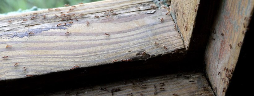 Al entrar nos sentamos en los largos bancos. Y nada más levantar la cabeza para mirar por los ventanucos, veo que estos están infestados de hormigas. Y no solo los ventanucos, sino toda la caseta, ya que había por todos lados. Al verlas, me di cuenta de que se trataba de hormiga argentina (Linepithema humile). Es decir, de una especie que se considera exótica e invasora por su capacidad de alterar el medio donde llega. No hace falta que detalle la biología de esta especie, bien conocida [1]. Solo un detalle, su expansión por la Península Ibérica lleva más de 100 años de curso. Allí donde llega se convierte en un problema. Muy difícil de erradicar, por no decir imposible. Se ha de aprender a convivir con ella. Hay urbanizaciones y bloques de viviendas infestados por esta hormiga que, quizás, no logren nunca acabar con ella.