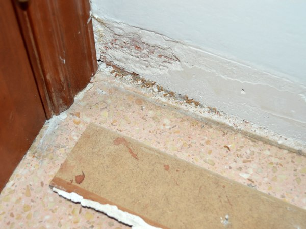 Fig 1. Zócalo retirado con mudas y larvas de escarabajo de la alfombra (Attagenus)./ C. Pradera 10-2016