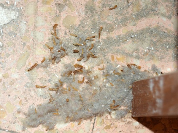 Fig 4. Mudas y larvas de escarabajo de la alfombra (Attagenus), detrás de un armario./ C. Pradera 10-2016
