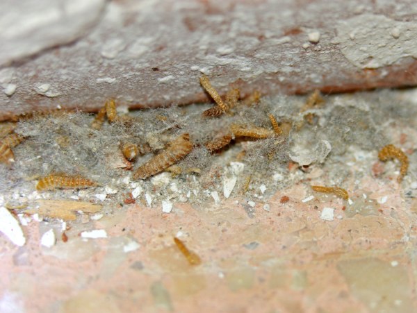 Fig 5. Mudas y larvas de escarabajo de la alfombra (Attagenus)./ C. Pradera 10-2016