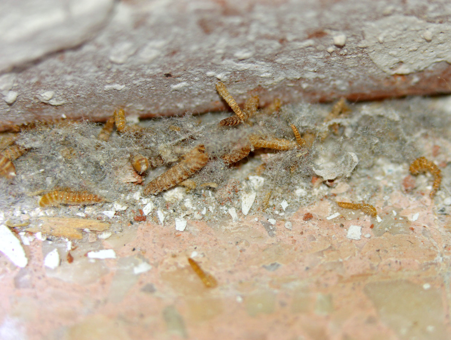 Fig 4. Mudas y larvas de escarabajo de la alfombra (Attagenus), detrás de un armario./ C. Pradera 10-2016