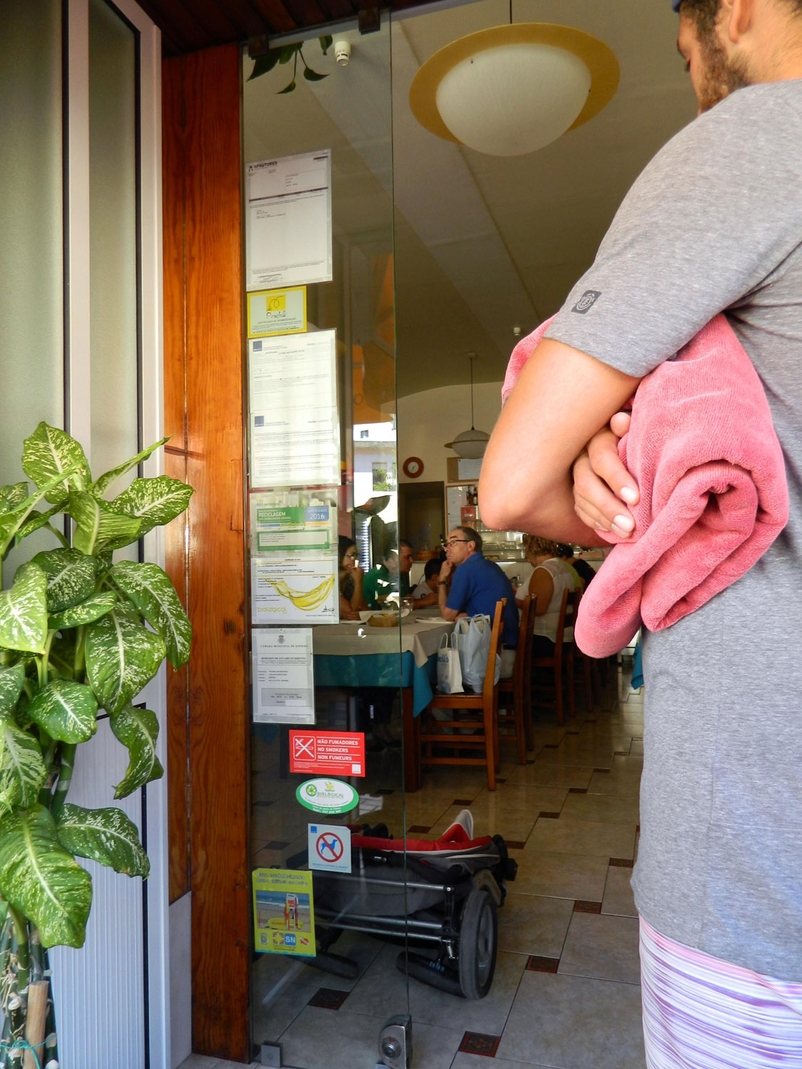 En la imagen número 1 se puede ver la entrada de un restaurante de Espinho en el que mi mujer y yo estábamos haciendo cola. Es típico de la zona en la que estuve que, de manera bien visible para el público, en la puerta de acceso se coloquen numerosos carteles informativos. El más importante de todos es el cartel donde se indican los horarios de funcionamiento. Suele estar firmado por algún responsable municipal. Luego se pueden encontrar carteles de diversa índole como el que indica que se reciclan los aceites de cocina, que se dispone de libro de reclamaciones, que se prohíbe fumar, que no se permite la entrada de perros, etc. Y también, por lo general, aparecen bien visibles dos carteles más. Uno es de la empresa que asegura la higiene y seguridad alimentaria. Y otro es el certificado de garantía de una empresa de control de plagas.