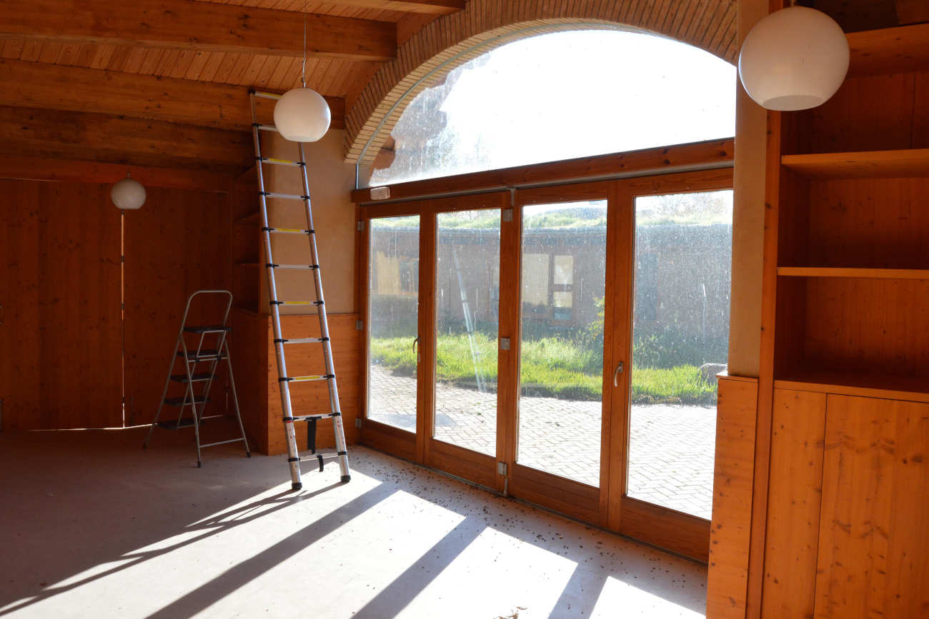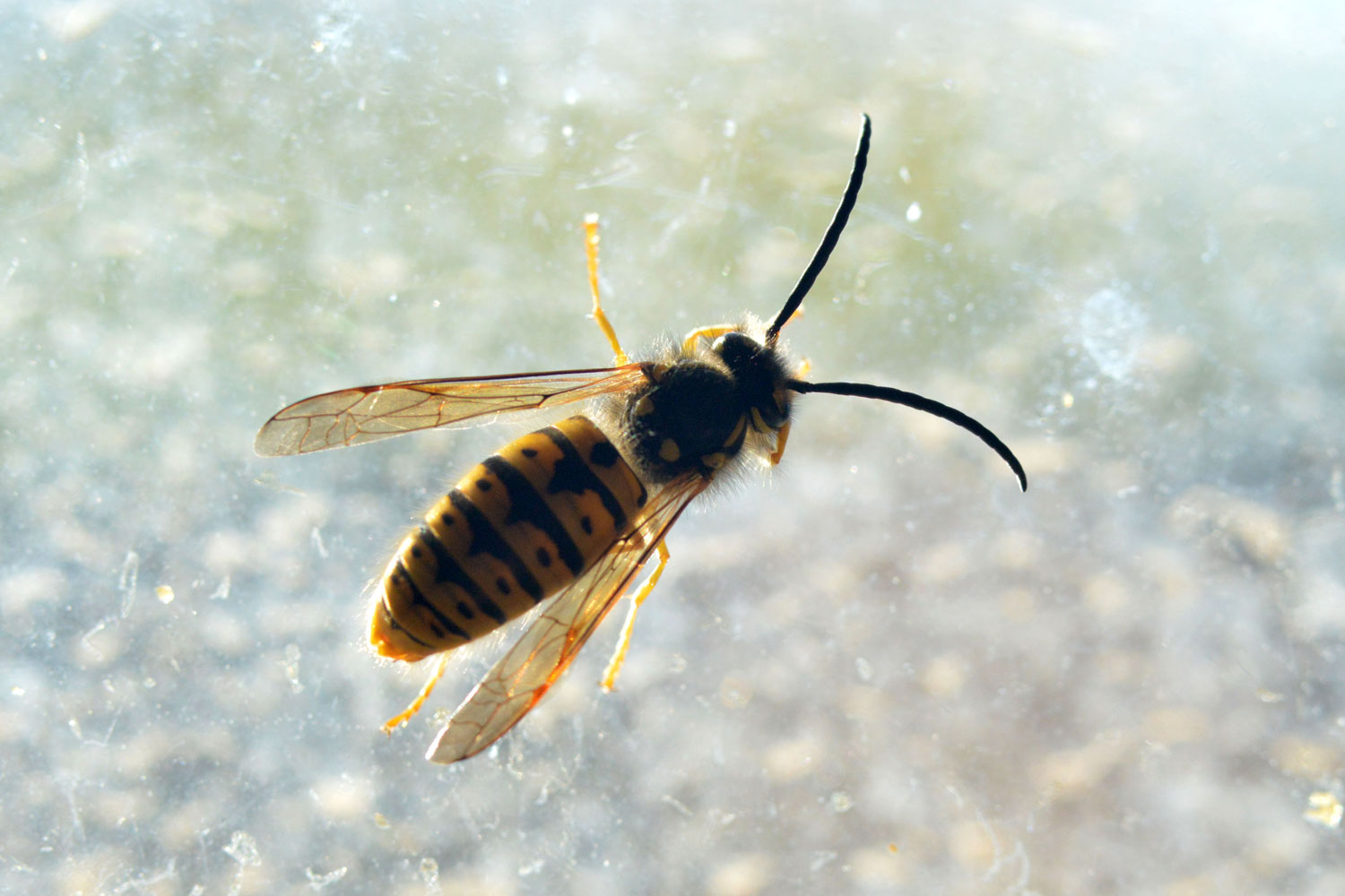 Hace unos días, realizamos un tratamiento contra Vespula germanica [1]. El avispero se encontraba en un de edificio de Santa Eulàlia de Ronçana (figura 2). Esta especie de avispa es muy plástica y puede instalarse en gran variedad de espacios donde encuentre un hueco para construir su avispero. En el campo lo construyen bajo tierra, pero en ciudad lo hacen en huecos de paredes, bajo tejados o en setos [2]. Eso sí, siempre con acceso directo al exterior. En este caso fue en la parte alta de la pared. En la imagen, se puede ver la situación en la parte alta de la escalera.