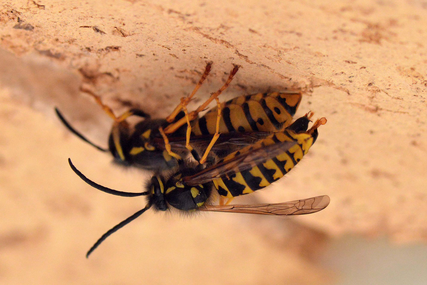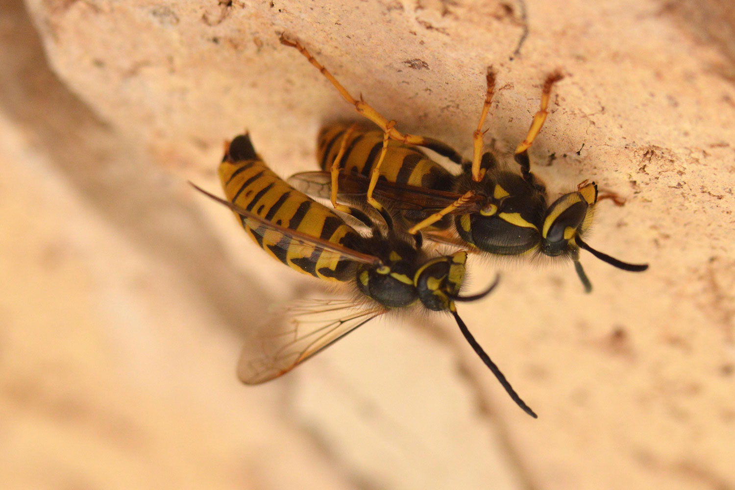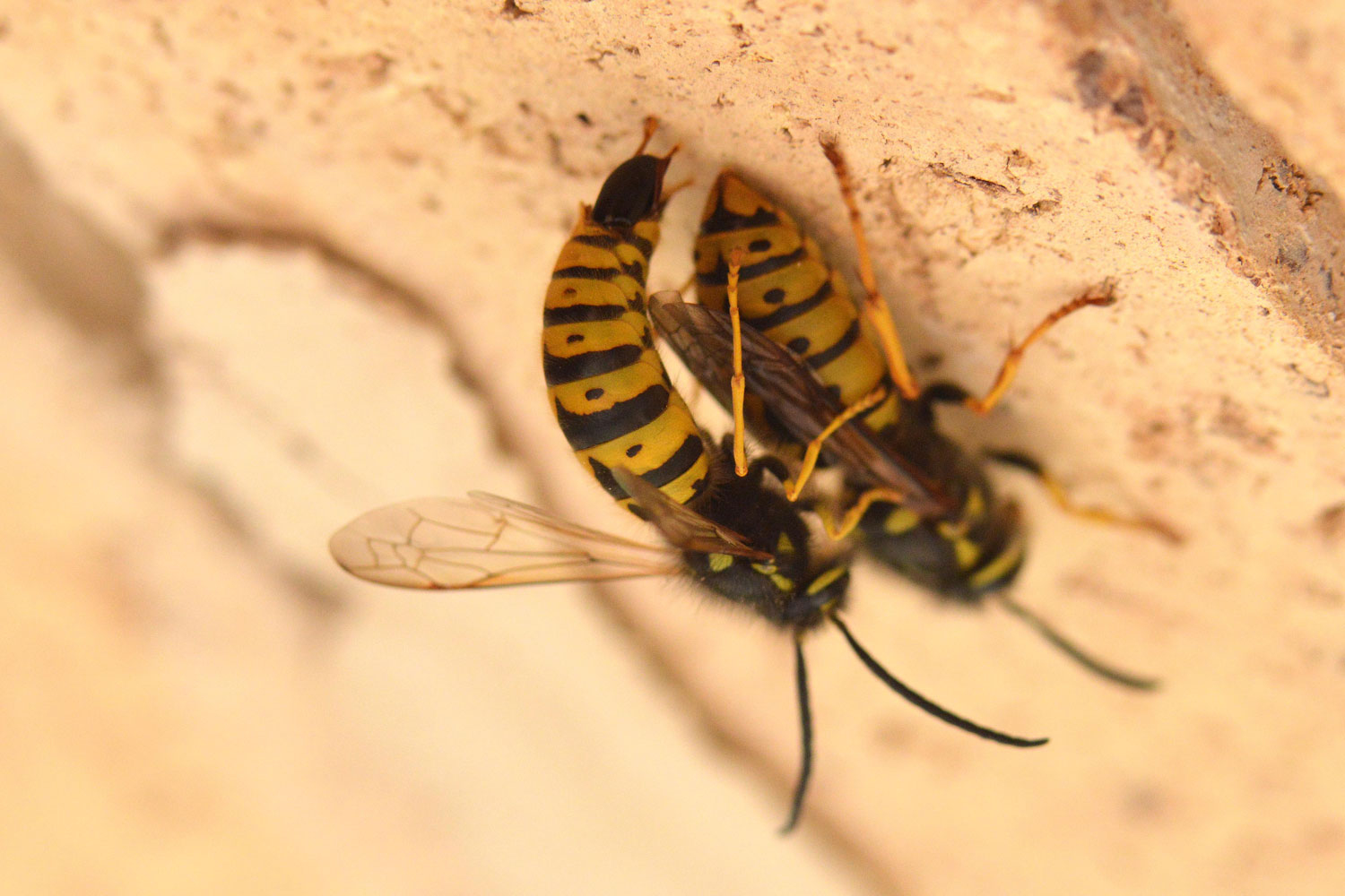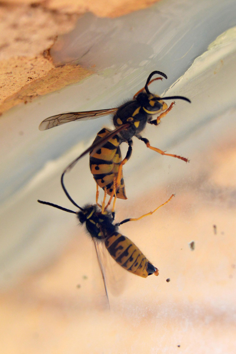 A finales del otoño, con la llegada del frío, los machos y las hembras se darán a la cópula. Tras ello las hembras abandonan el nido y buscan lugares de refugio donde pasar el invierno. Refugiadas bajo el suelo, en un agujero de un árbol o bajo una teja hibernarán. Con la llegada de la primavera, en caso de que sobrevivan, iniciarán un nuevo ciclo con la construcción de un avispero. Como en el caso de las hormigas, la hembra fundadora criará sus primeras hijas sola. Estas hijas son obreras (hijas no fértiles) que se harán cargo de las tareas de construcción y alimentación.