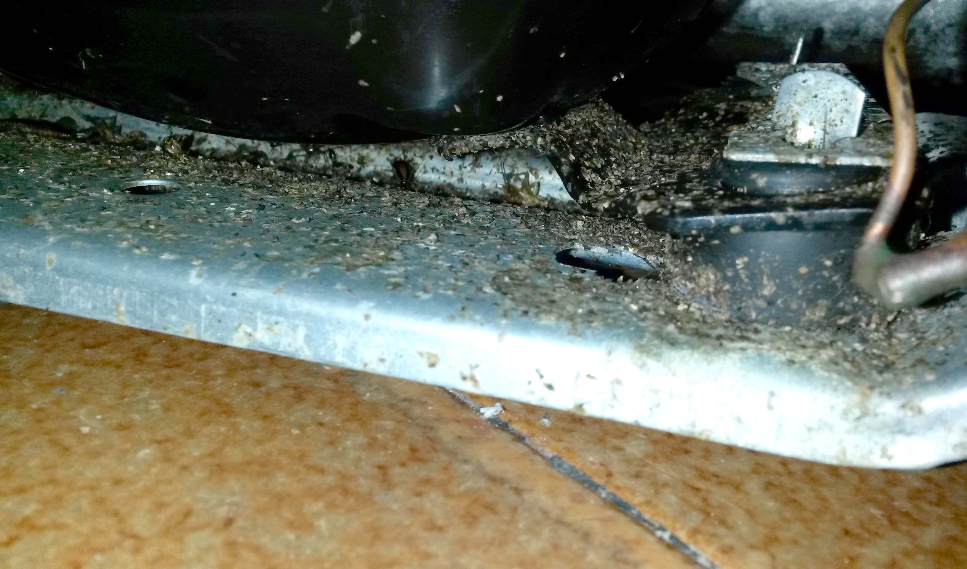 He aquí unas imágenes que ilustran la problemática de cucaracha alemana (Blattella germanica) criando en un motor de nevera. Sirvan la fotografías para completar una entrada anterior dedicada a la problemática provocada en este electrodoméstico [1].