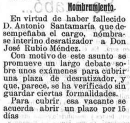 El 5 de junio de 1917 apareció una noticia publicada en ‘La Prensa Diario Republicano’ (figura 2). Se informaba que «en la vacante del desratizador Antonio Santamaría, ha sido nombrado interinamente por el alcalde José Rubio Méndez«. Tenemos, pues, los nombres más antiguos de personas que ejercieron el oficio de desratizador