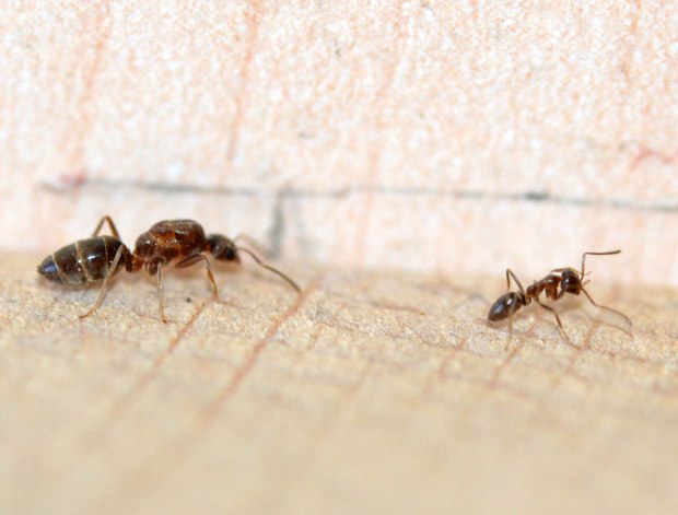 Ahora es el momento de acabar con ellas. O por lo menos, es el momento idóneo para menguar las huestes de hormiga argentina (Linepithema humile) y dejar sus ejércitos fuera de combate una temporada. Como bien sabemos, esta hormiga es originaria de una zona tropical del sur de América. No saben lo que son los rigores del invierno y su falta de alimentos. Es por ello que se han asentado bien en las zonas costeras de la Península Ibérica. Y más en concreto, en las ciudades donde no falta agua y las temperaturas son suaves. Así que, cuando aprieta el frío, la hormiga argentina se traslada al interior de edificios buscando refugio y alimento. Desde hace cosa de un mes, vengo observando cómo van cambiando de ubicación. Hay que tener en cuenta que la hormiga argentina es una hormiga vagabunda (tramp ant) y no tiene un hormiguero fijo.