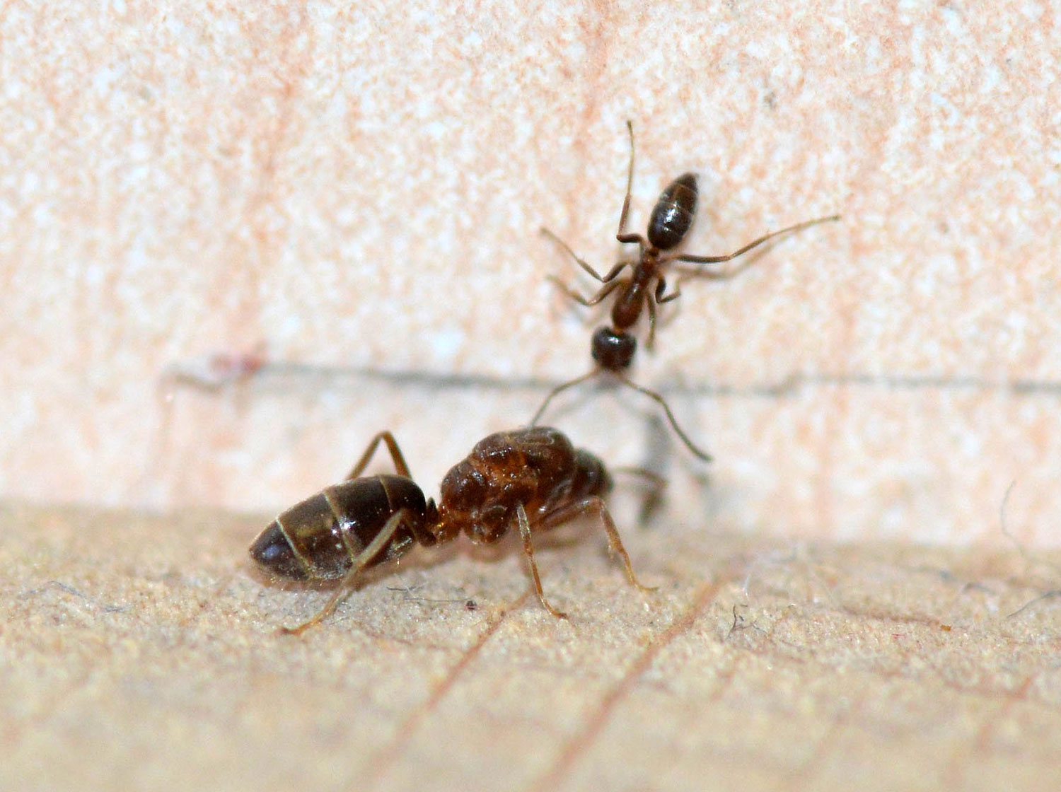 Ahora es el momento de acabar con ellas. O por lo menos, es el momento idóneo para menguar las huestes de hormiga argentina (Linepithema humile) y dejar sus ejércitos fuera de combate una temporada. Como bien sabemos, esta hormiga es originaria de una zona tropical del sur de América. No saben lo que son los rigores del invierno y su falta de alimentos. Es por ello que se han asentado bien en las zonas costeras de la Península Ibérica. Y más en concreto, en las ciudades donde no falta agua y las temperaturas son suaves. Así que, cuando aprieta el frío, la hormiga argentina se traslada al interior de edificios buscando refugio y alimento. Desde hace cosa de un mes, vengo observando cómo van cambiando de ubicación. Hay que tener en cuenta que la hormiga argentina es una hormiga vagabunda (tramp ant) y no tiene un hormiguero fijo.