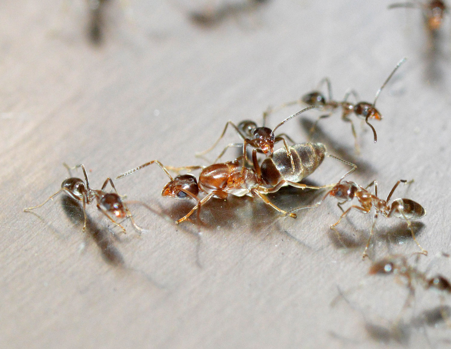 Totalmente cierto. En el caso de la hormiga argentina, estamos hablando de colonias con muchos individuos. Si sumáramos la masa de todas la que pueden venir a comer, superaría la masa de cucarachas que tenemos en una cocina. Por otra parte, las cucarachas no comen hasta saciarse del todo. Ellas viven cerca de sus fuentes de alimentación y toman lo que necesitan. Están cerca. La hormigas se trasladan más lejos y deben recoger el máximo porque no solo se alimentan las obreras recolectoras de ello,sino todas las demás hormigas que quedan en la colonia: obreras, larvas, reinas.