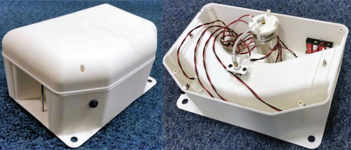 Tras varios desarrollos, en la imagen número 1 se puede ver cómo ha quedado el dispositivo definitivo con el que se están realizando pruebas de campo en la actualidad. Se ha diseñado para evitar que penetren en el dispositivo otras especies no diana. Cosa que es difícil. Se puede ver la disposición del aerosol que permite la aplicación de hasta 250 dosis. Funciona con una pequeña batería de lo que parecen cuatro pilas AA. Al penetrar la rata, los sensores la detectarían y activarían la descarga del aerosol. Según se puede leer en la página web del proyecto Pied Piper, la Kenyatta University, Nairobi (Kenia) ha realizado pruebas de campo con el dispositivo. Estas han sido exitosas y se ha establecido una dosis de 80 mg de colecalciferol para el control efectivo de ratas. Una dosis muy baja y que convierte el dispositivo en seguro.