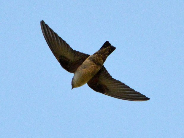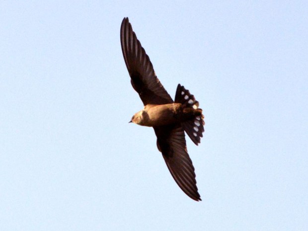 Fig 9. Avión roquero (Ptyonoprogne rupestris) en el campanario de la iglesia parroquial de Arbúcies (Girona)./ C. Pradera 03-2017