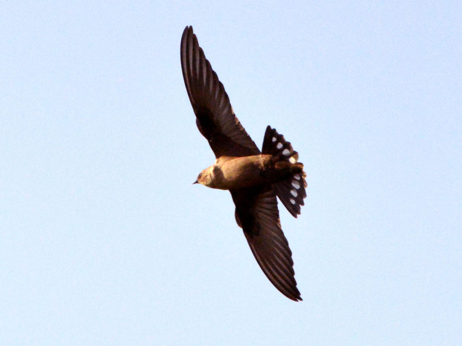 El avión roquero tiene una longitud de 13 a 15 centímetros. Es igual de tamaño que el avión común con el que puede ser confundido. Sin embargo, nos podemos valer para su distinción por la forma de la cola. Cuando está desplegada en vuelo, la cola del avión roquero tiene forma de abanico. En cambio, la cola del avión común es ahorquillada. Pero de cerca, el avión roquero tiene un plumaje de color marrón que lo hace inconfundible. Por la parte superior es marrón oscuro. Y por la parte inferior, marrón claro. Un detalle característico son la manchas blancas de las plumas de la cola (figura 5).