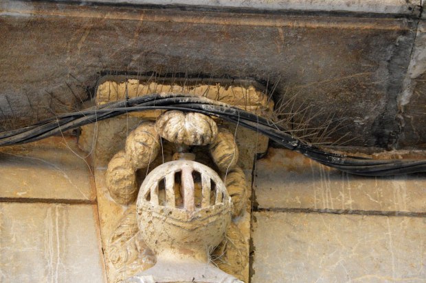 En general, muchas personas ven con enemistad a las palomas. Muchos las equiparan a las ratas. Como ya he dejado constancia en otras entradas, mi parecer es todo el contrario. Me gustan las aves. Y las palomas no son portadoras de mala o buena voluntad como las personas. Hay que ejercer un control sobre ellas por razones sanitarias. Pero este ha de realizarse bien planeado. En las imágenes se constata que no todas las instalaciones de tiras de pinchos están bien ubicadas. Y además hay soluciones mejores a nivel estético.