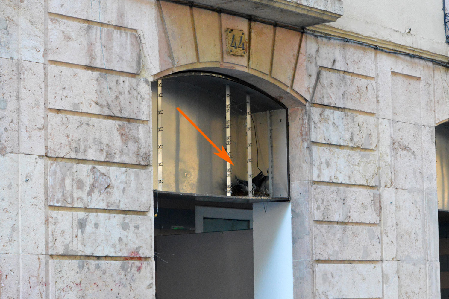 Un aspecto interesante es que las palomas que forman esa colonia son especiales. Están muy acostumbradas a la presencia de personas hasta el extremo de situar sus nidos cerca del suelo. En la imagen número 1 se puede ver un nido a unos dos metros del suelo. Y en la imagen número 7, otro nido está situado en el cajón del letrero de una tienda en remodelación. Y ambos nidos fueron fotografiados el 7 de enero pasado.