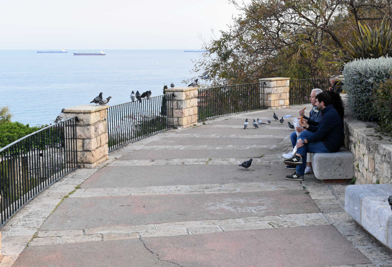 Fig 17. Palomas en el balcón del Mediterráneo esperando restos de comida./ C. Pradera 04-2021