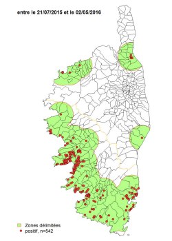 Fig 7. Mapa de afectación en Córcega, a mayo de 2016.