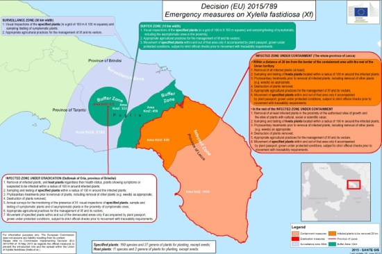 Fig 4. Mapa de contención de la Xylella fastidiosa según Decision (EU) 2015/789.