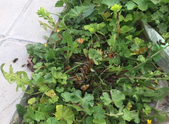Antonio Troya de Quimiolvera (www.quimiolvera.es) me ha enviado unas imágenes muy interesantes en las que se ven orugas alimentándose de plantas. Y junto con las imágenes, escribe: «Como cada año cuando llega este tiempo, aparecen estas orugas en los huertos de lechugas y acelgas, y también en los bordes de los caminos comiendo alguna que otra planta, principalmente tallos frescos. A la gente le parece que es procesionaria y crea una alerta. Y las autoridades municipales quieren que se haga algo al respecto.»