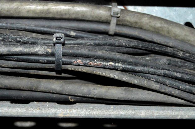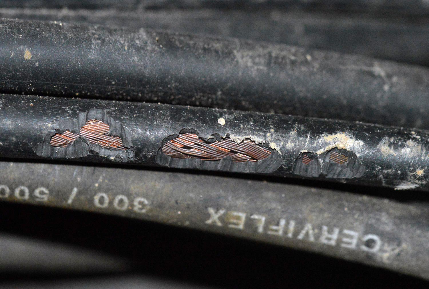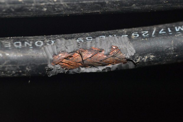 Fig 6. Cables roídos por rata de alcantarilla (Rattus norvegicus)./ C. Pradera 02-2017
