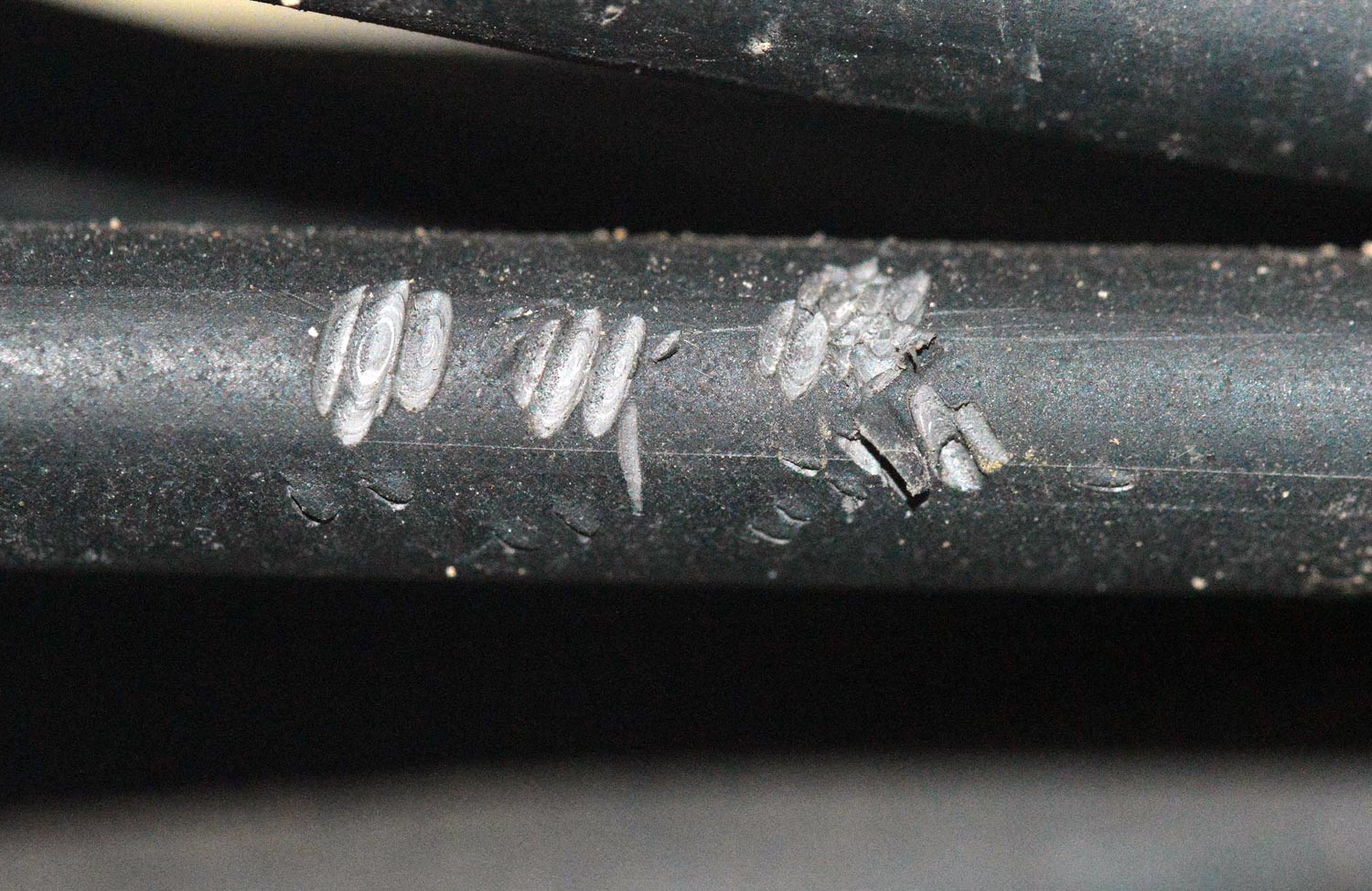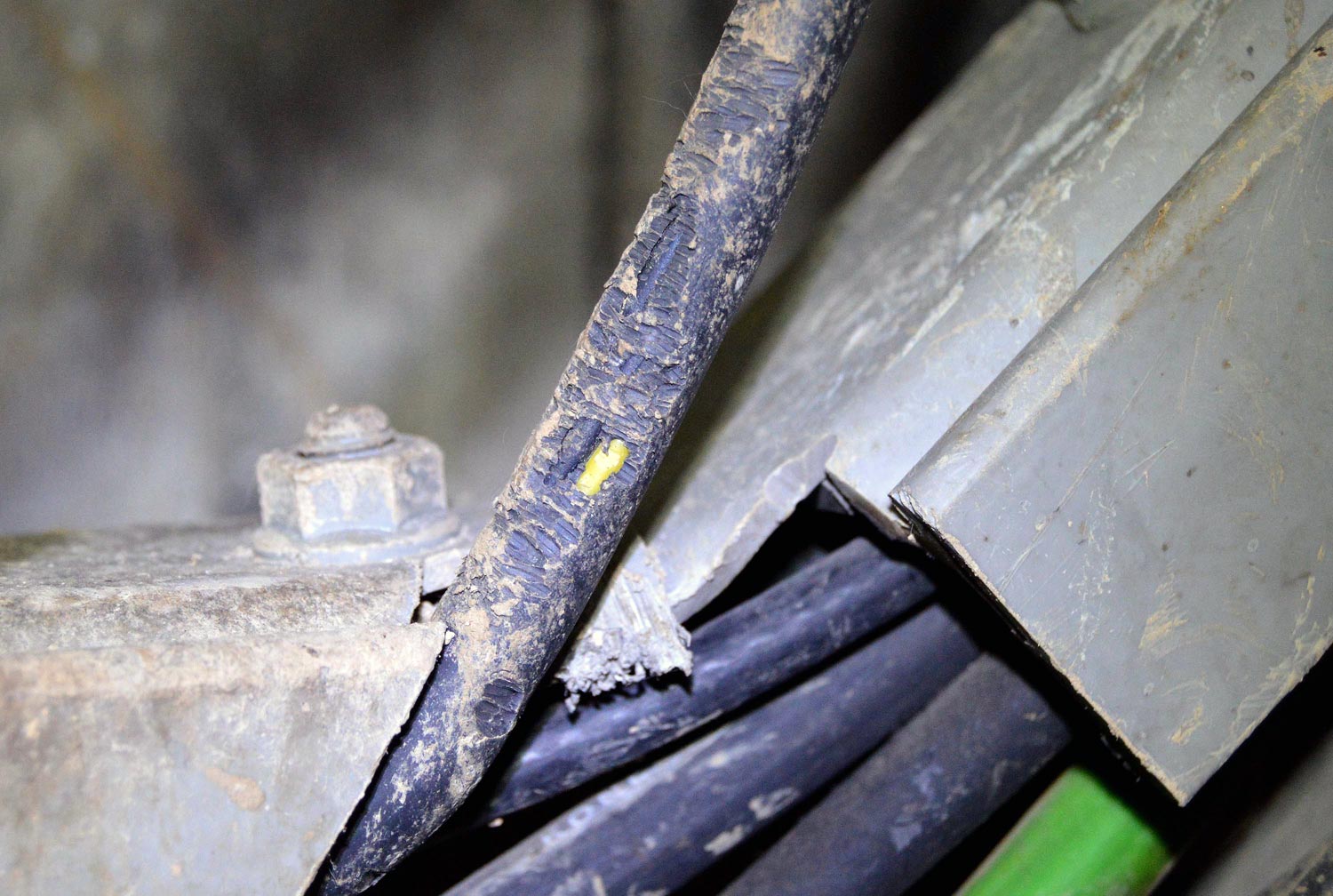Recientemente estuve en una galería de servicio donde de vez en cuando pasa una rata (figura 1). La situación está controlada. Pero eso no evita que entren y que dejen las evidencias de su paso. En las imágenes de esta entrada se pueden ver roeduras, excrementos, orina, suciedad, huellas y marcas de uñas sobre aislantes.