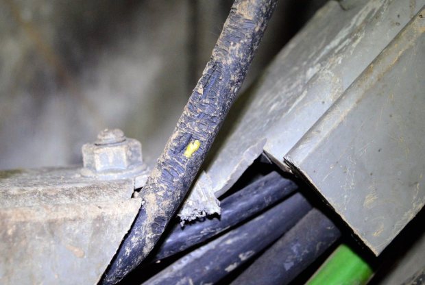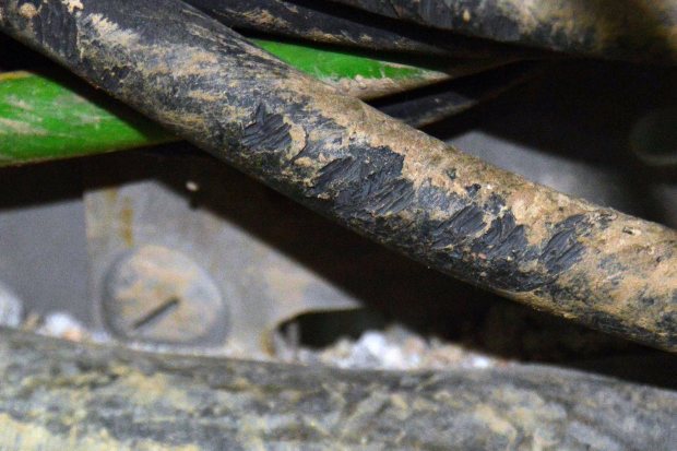 Fig 11. Cables roídos por rata de alcantarilla (Rattus norvegicus)./ C. Pradera 02-2017