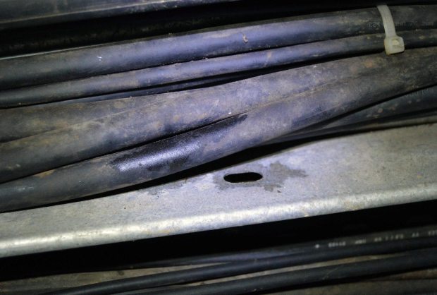 Fig 10. Cables roídos por rata de alcantarilla (Rattus norvegicus)./ C. Pradera 02-2017