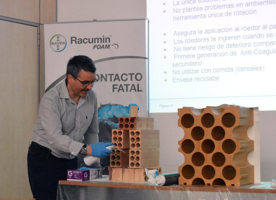 Daniel Lucien ha mostrado cómo aplicar la espuma en agujeros o en zonas de paso tal y como se puede aplicar en otros países de Europa. Pero como bien ha indicado que este uso no es posible en España, ya que el Ministerio de Sanidad solo ha autorizado su uso en portacebos en interiores de edificaciones. Según podemos leer en la Resolución de autorización e inscripción en el Registro de Biocidas, «preferentemente se utilizarán portacebos en forma de tubo que se colocarán a la salida de los escondites y madrigueras, en los huecos de las construcciones y/o caminos utilizados habitualmente por los roedores, en locales inaccesibles a niños, mascotas y otros animales.»