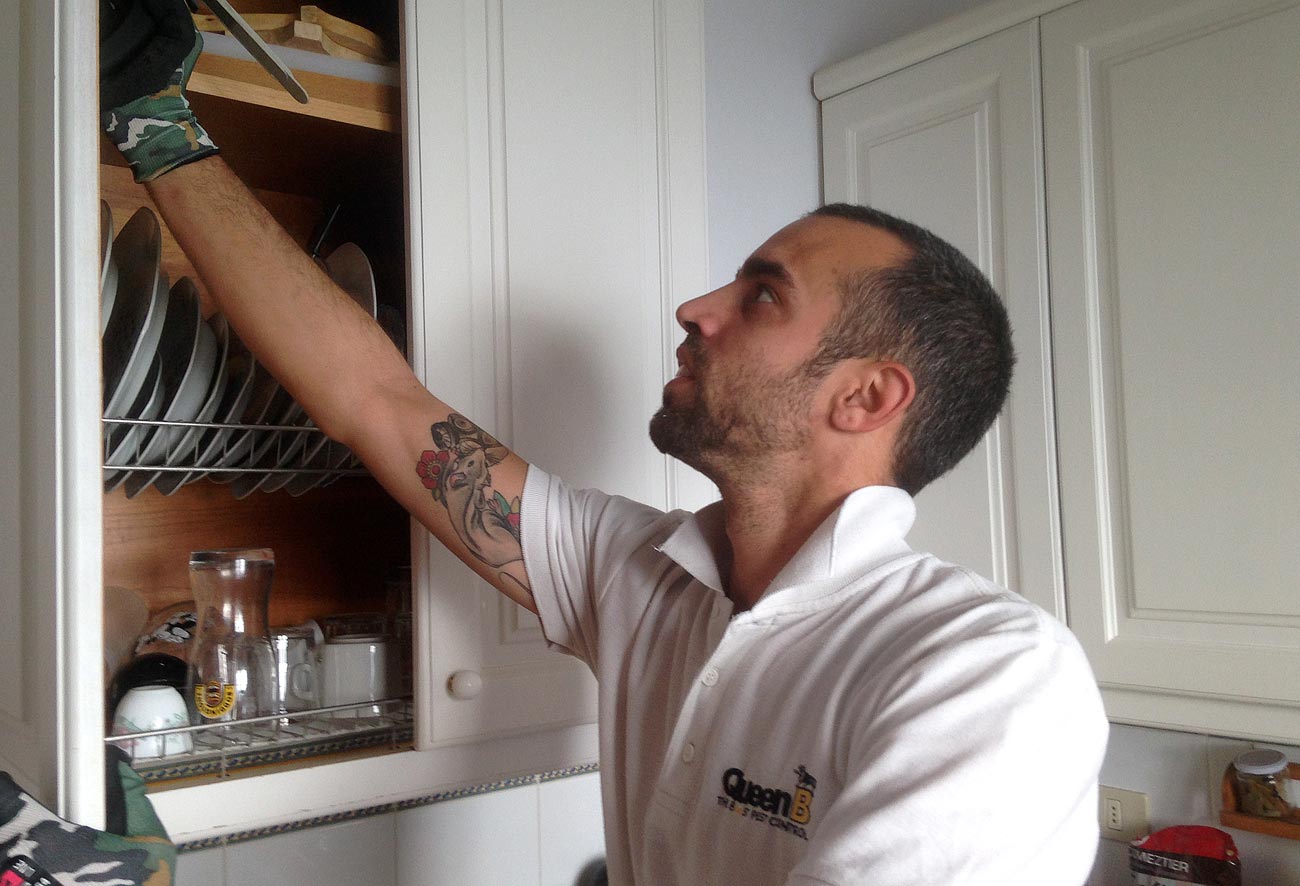 Fig 1. Luca Genicco realizando un tratamiento contra cucarachas en una vivienda particular./ Luca Genicco 03-2017