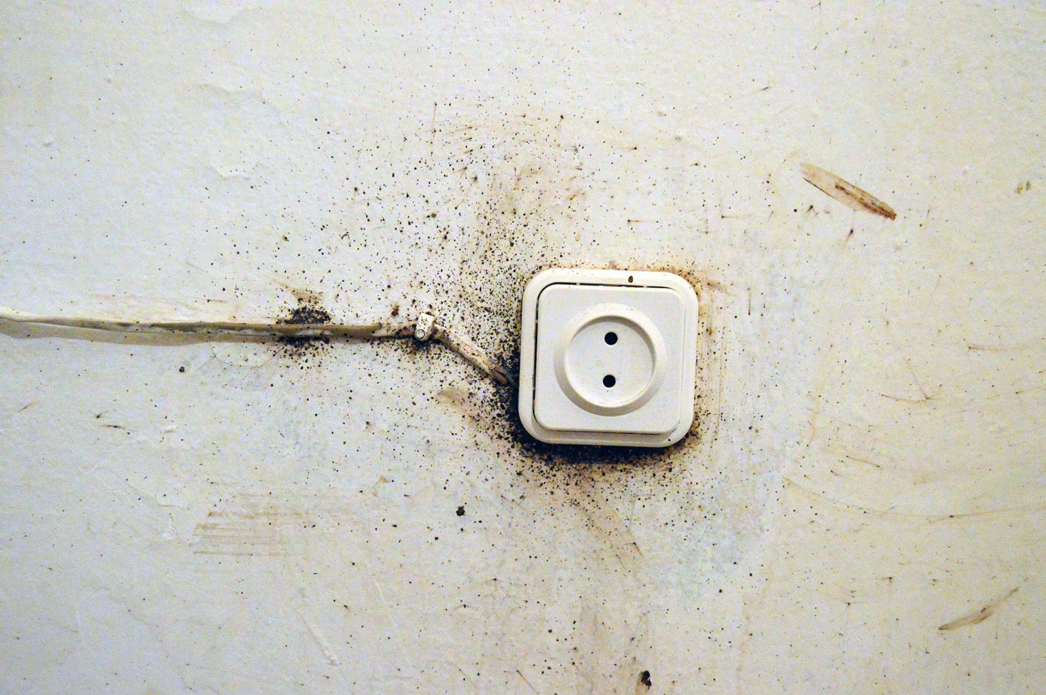 Fig 1. Enchufe y cable manchado por los excrementos./ C. Pradera 2016