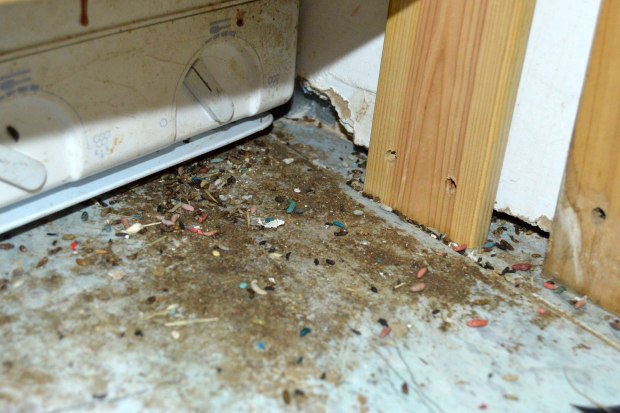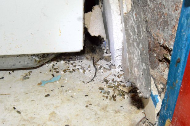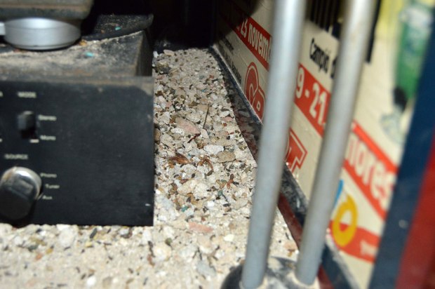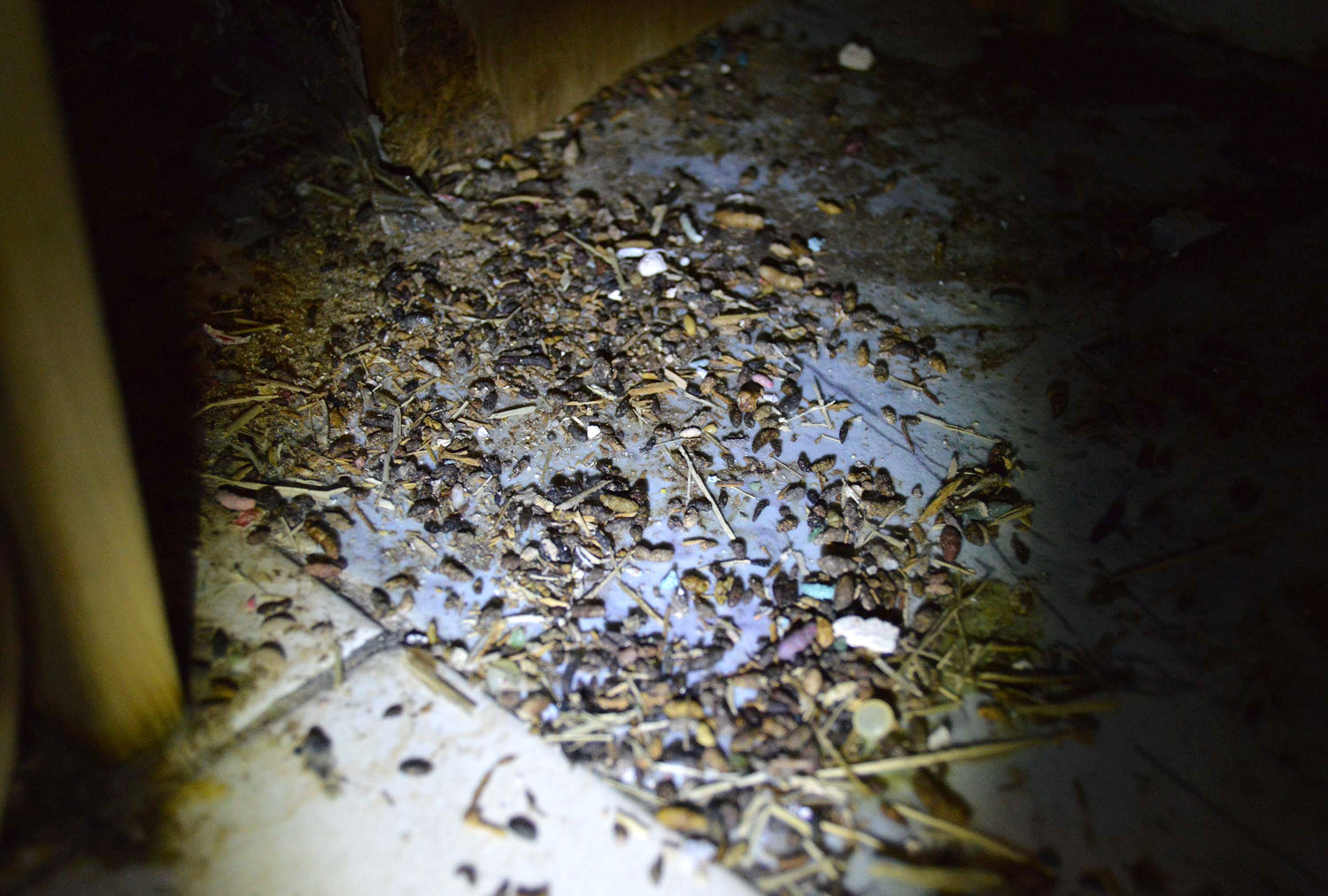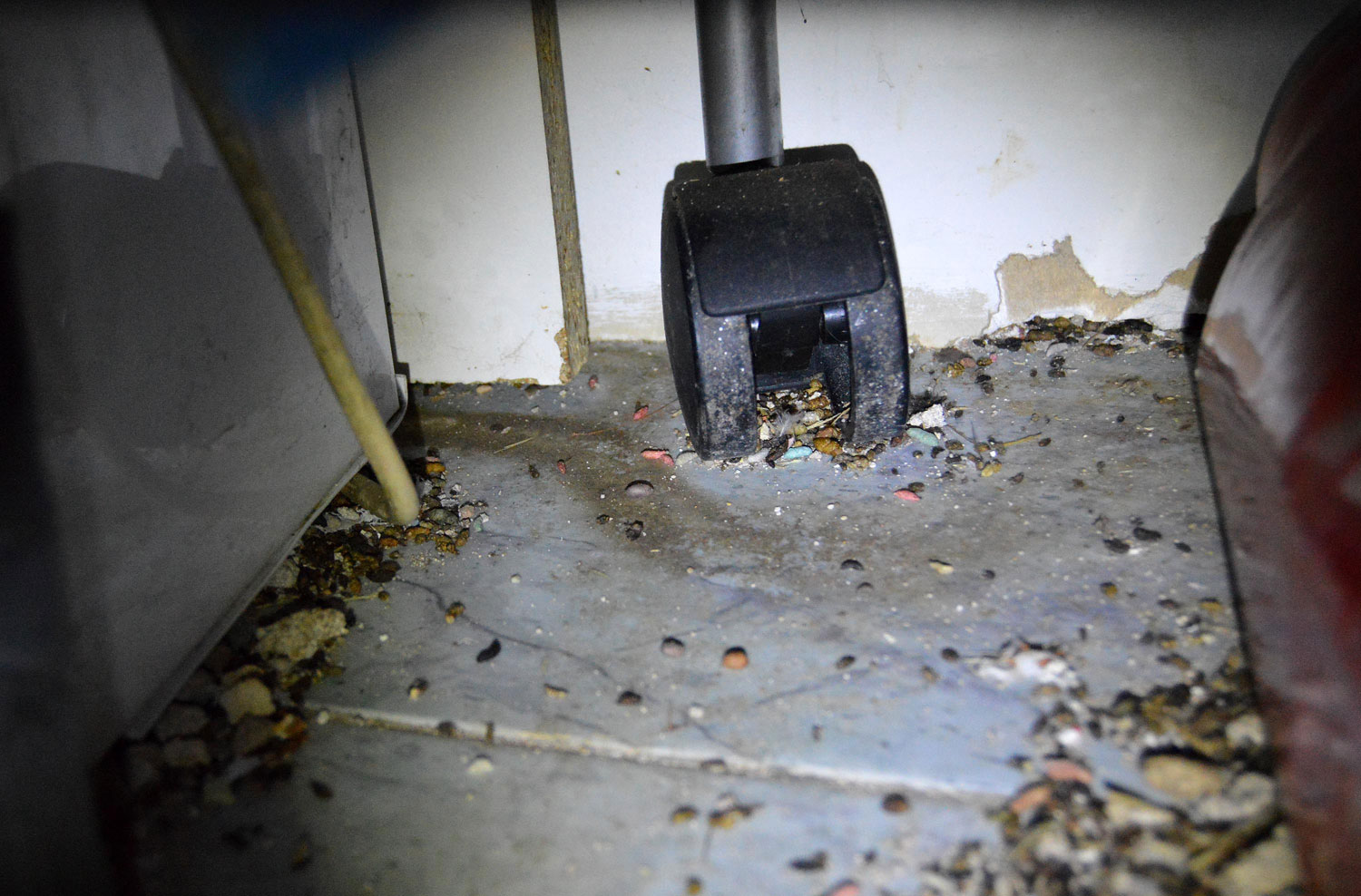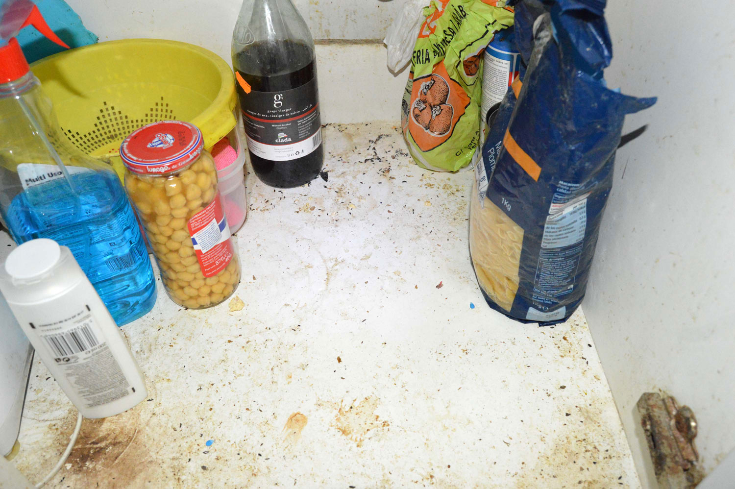 Fig 23. Marcas de grasa de ratón doméstico debajo de un mueble de cafetera./ C. Pradera 03-2017