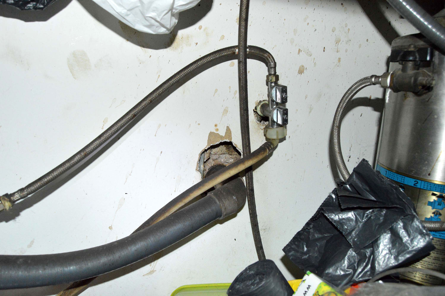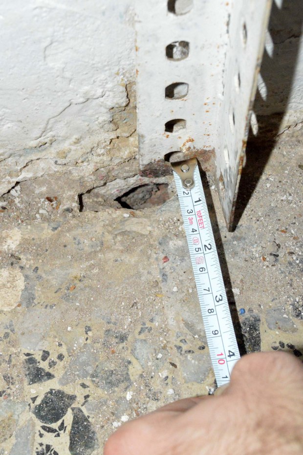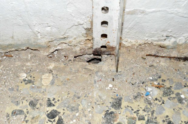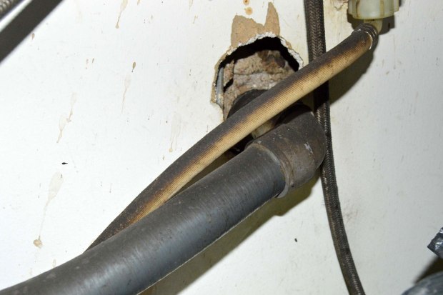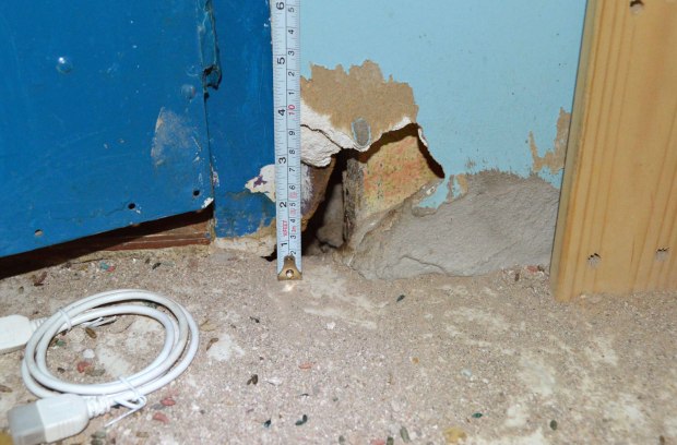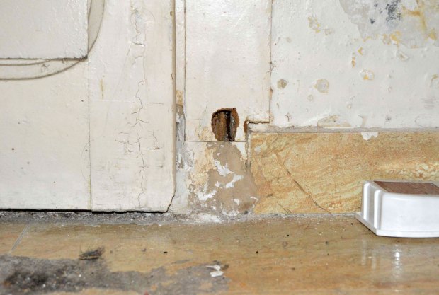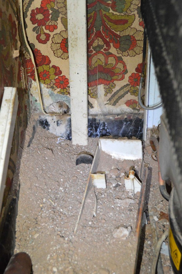 Fig 21. Acceso a madriguera de ratón doméstico debajo de un mueble de cafetera./ C. Pradera 03-2017