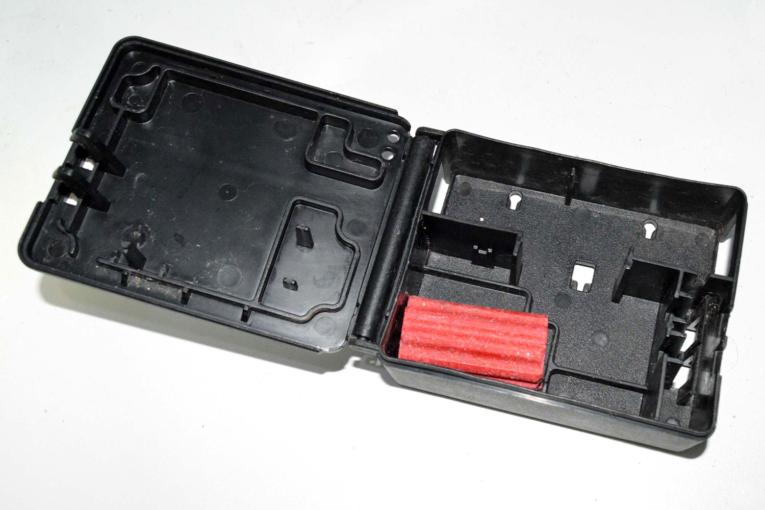 Fig 27. Portacebos Safeston con rodenticida consumido./ C. Pradera 03-2017