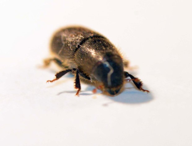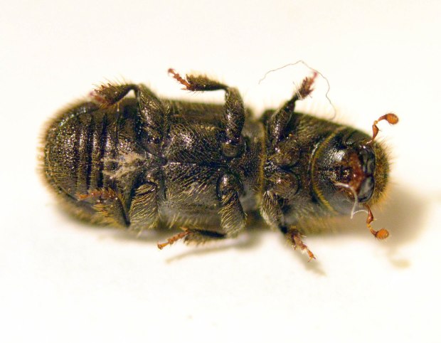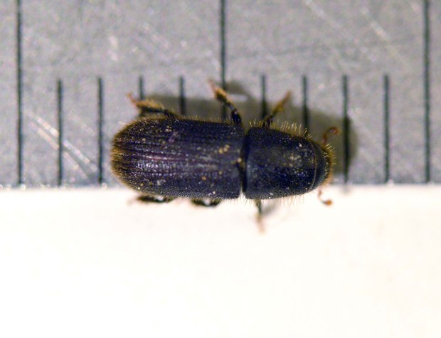 Hace unos días paseaba por un bosque observando hormigas. Pasó delante mío un pequeño coleóptero que aterrizó sobre mi pantalón. Lo recogí pensando que era un ejemplar del género Tomicus, un perforador que está diezmando los pinos de la comarca del Maresme (Barcelona). Guardé el ejemplar para observarlo en casa. Pero cuando me puse a mirarlo a través de la lupa binocular vi que no era de este género, sino de Hylurgus. Se trataba también de un perforador del pino de la familia de los escolítidos (Scolytidae), pero de menor interés porque, por suerte, no es una plaga de importancia para la supervivencia de las coníferas. A diferencia de Tomicus que se establece en la pare media y alta de las coníferas, Hylurgus lo hace en la base y en las raíces que quedan fuera del suelo.