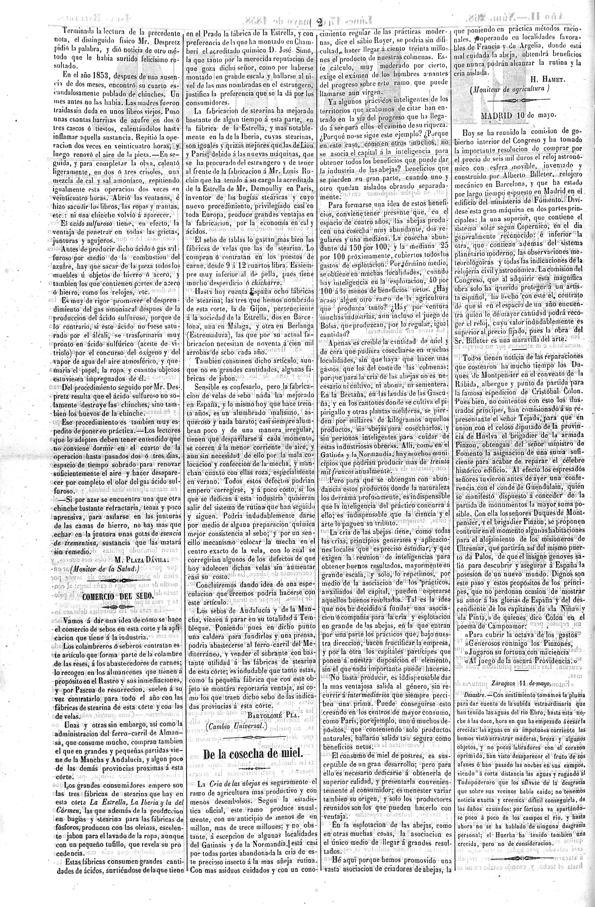 -»La caza de las chinches debe ser incesante y activa sobre todo en los paises cálidos, por cuanto en estos se multiplican con espantosa rapidez. Nunca olvidaré que el años 1838, hallándome alojado en una de las fonda mas renombradas de la populosa y bella ciudad de Burdeos, me disperté por la noche, aunque me hallaba rendido de fati[g]a, acosado de millares de chinches. Por la mañana interpelé al ama de la fonda, quejándome de que me hubiese engañado, y le intimé que iba á mudarme. –Como gusteis, caballero (me dijo); pero sabed que mudando de fonda no lograréis mas que mudar de chinches!– Le di mi receta de disolucion jabonosa. ¿La pondria en práctica?