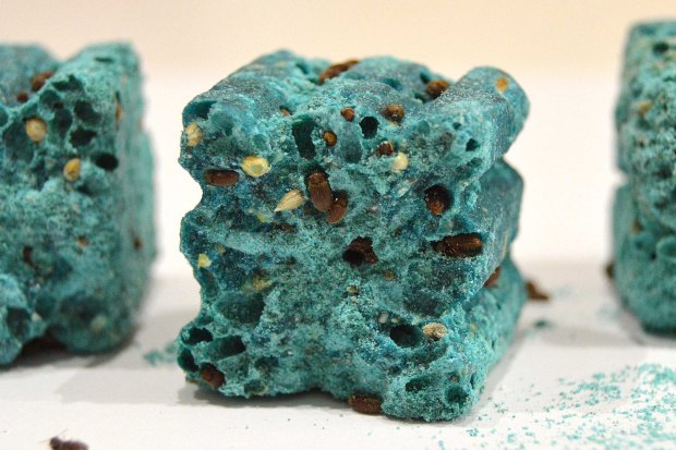 Fig 2. Bloques de Notrac Blox atacados por la carcoma del pan (Stegobium paniceum)./ C. Pradera 03-2017