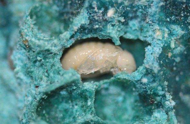 Fig 4. Crisálida de carcoma del pan (Stegobium paniceum)./ C. Pradera 03-2017