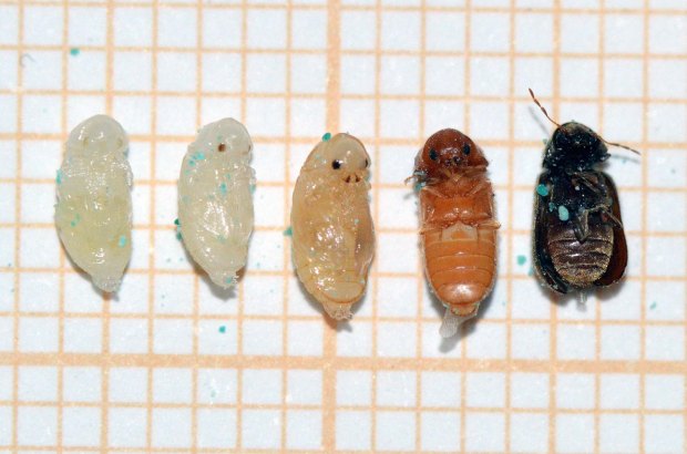 Fig 10. Evolución de la crisálida de carcoma del pan (Stegobium paniceum)./ C. Pradera 03-2017