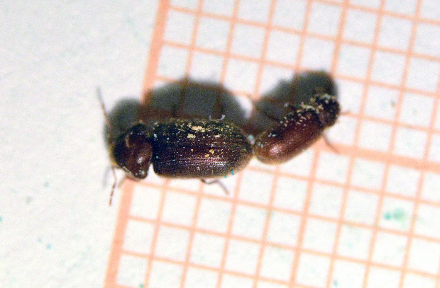 Fig 8. Adultos de carcoma del pan (Stegobium paniceum) realizando la cópula./ C. Pradera 03-2017