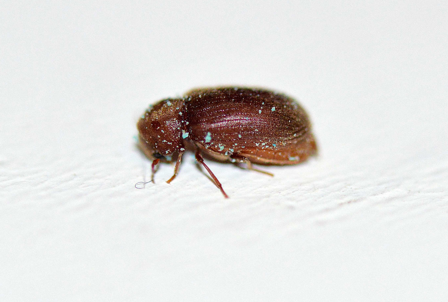 Carcoma del pan, Stegobium paniceum (Coleoptera, Anobiidae), en un bloque de Notrac Blox