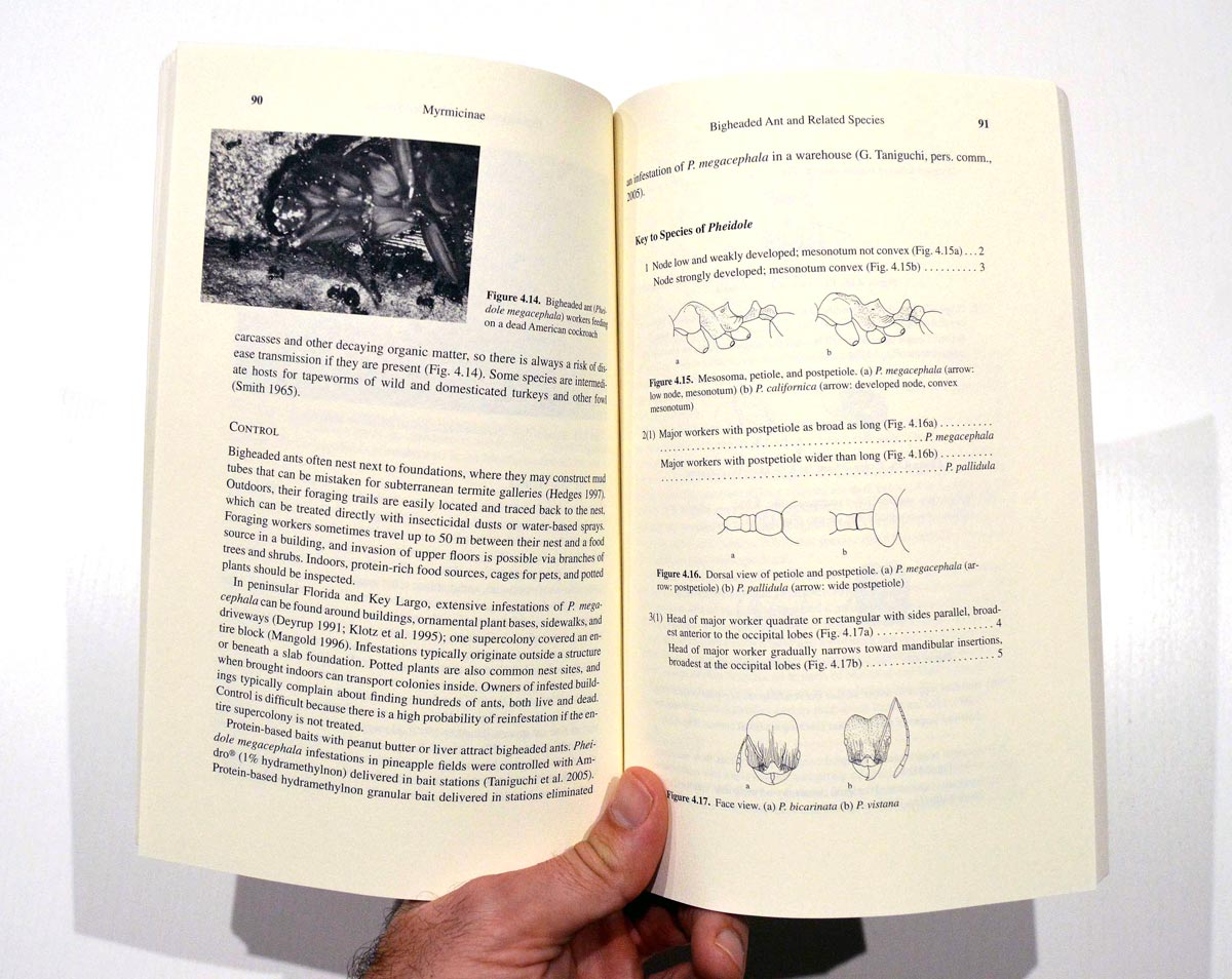 Para quienes tengan interés en el mundo de la hormigas, les recomiendo el libro ‘Urban Ants of North America and Europe’, escrito por John Klotz, Laurel Hansen, Reiner Pospischil y Michael Rust. El libro da cuenta tan solo de especies adaptadas al medio urbano que pueden afectar de alguna manera en la vida de las personas. Cuenta con claves de identificación, descripción de especies, daños que pueden ocasionar y métodos de control.