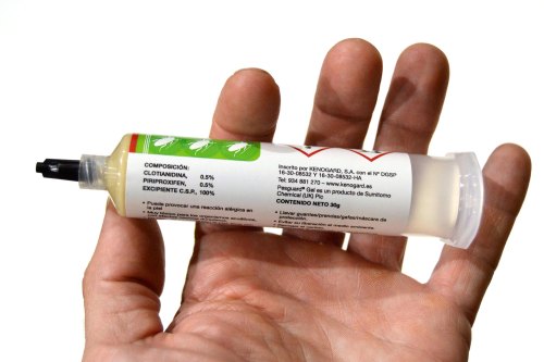 En segundo lugar, Pesguard Gel utiliza como materia activa insecticida la clotianidina, la cual viene avalada por su incorporación en el gel Maxforce Platin de Bayer [3]. Comenté en una entrada anterior que este gel me ha dado particularmente muy buen resultado. Sin embargo, en este gel está formulado al 1% y en Pesguard Gel lo está a la mitad, al 0’5%. Este es un aspecto muy interesante porque muestra su eficacia a bajas dosis. Quizás Maxforce Platin funcione tan bien porque, al actuar la clotianidina rápidamente sobre las cucarachas, queden residuos de esta materia activa sin metabolizar en las muertas. Y de esta manera, al alimentarse las vivas de los cadáveres se produzca un cierto efecto cascada.