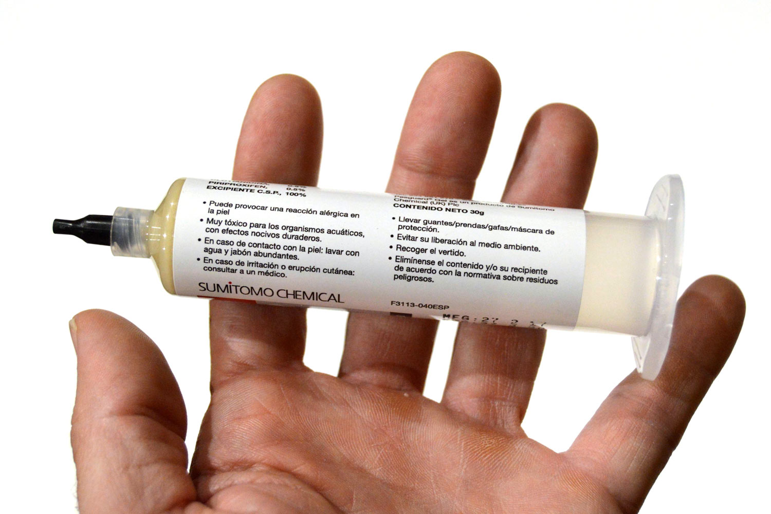 Y en tercer lugar, Pesguard Gel incorpora piriproxifén al 0’5%, uno de los productos estrella de Sumitomo Chemical. Como bien sabemos, este insecticida biorracional actúa de dos maneras sobre los insectos. Por un lado, como análogo de la hormona juvenil que es, interfiere en el proceso de la muda dando lugar a malformaciones. Por otro lado, interfiere en la reproducción esterilizando a los adultos. Este producto, si llegara a la mayor parte de los individuos de una población de cucarachas, cortaría el ciclo reproductivo.