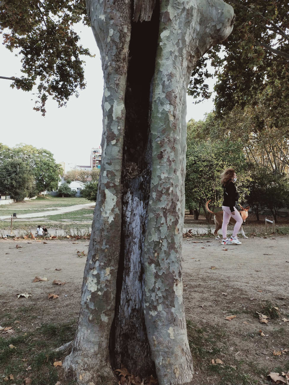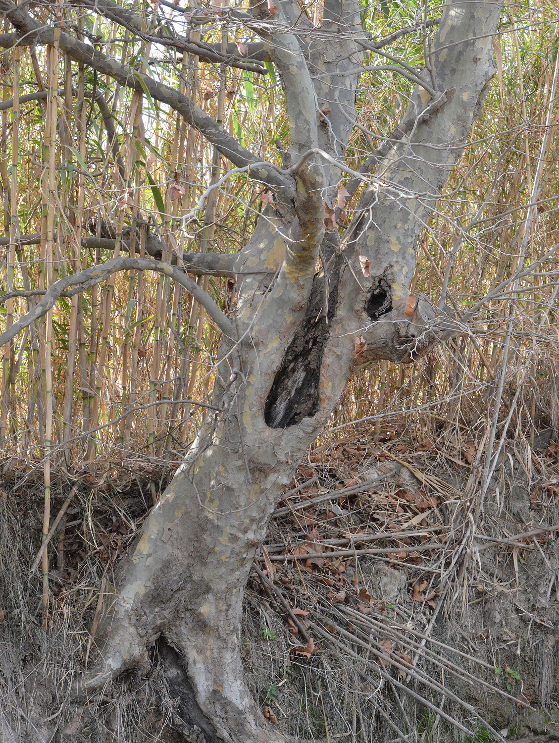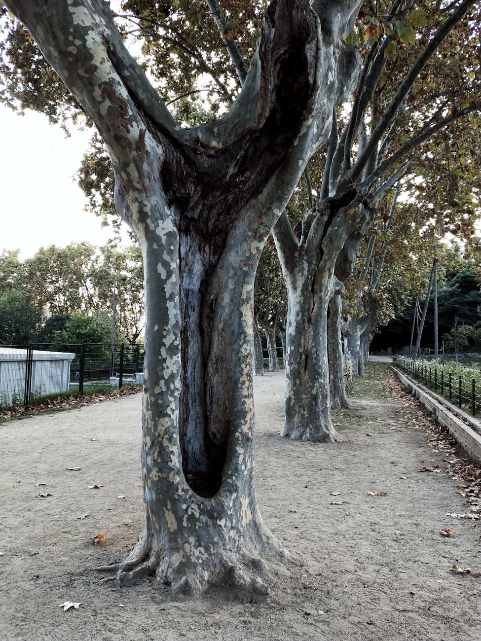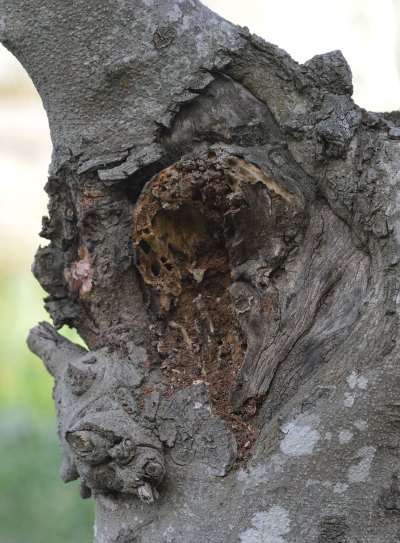 Es cierto que la principal vía de acceso de las termitas son las heridas de poda, pero también cabe mencionar los daños producidos por impacto. Una vez se instalan, las galerías practicadas facilitan la entrada de agua, hongos y bacterias. Todo ello inicia un proceso de pudrición que facilita aún más la extensión del ataque de las termitas. El tiempo juega a su favor y se van produciendo huecos en el árbol. En los casos más extremos, se observa el tronco totalmente vacío. Donde vivo no es difícil encontrar ejemplares de plátano de sombra con un fuerte ataque.