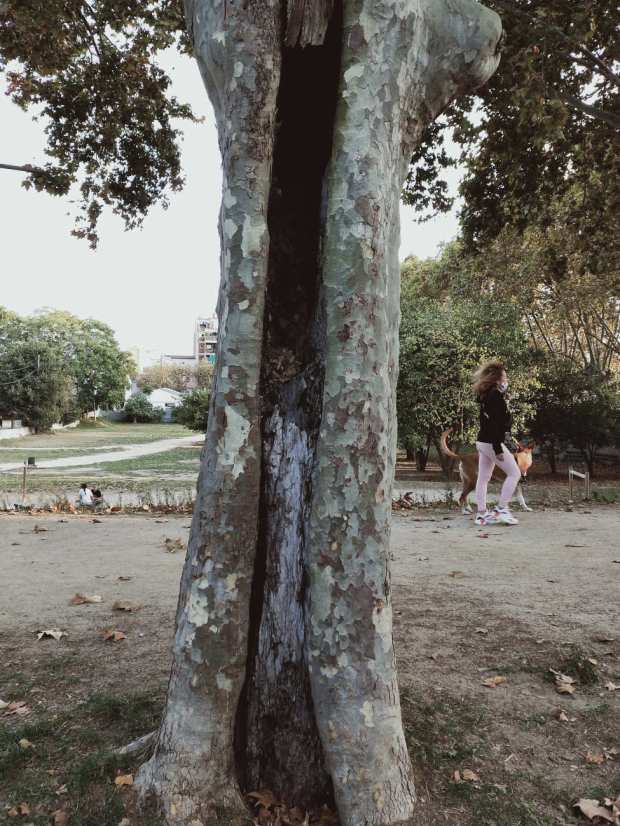 Fig 20. Afectación por termita Kalotermes flavicollis en plátanos de sombra en el Parque de Ca l’Arnús, Badalona./ C. Pradera 10-2020