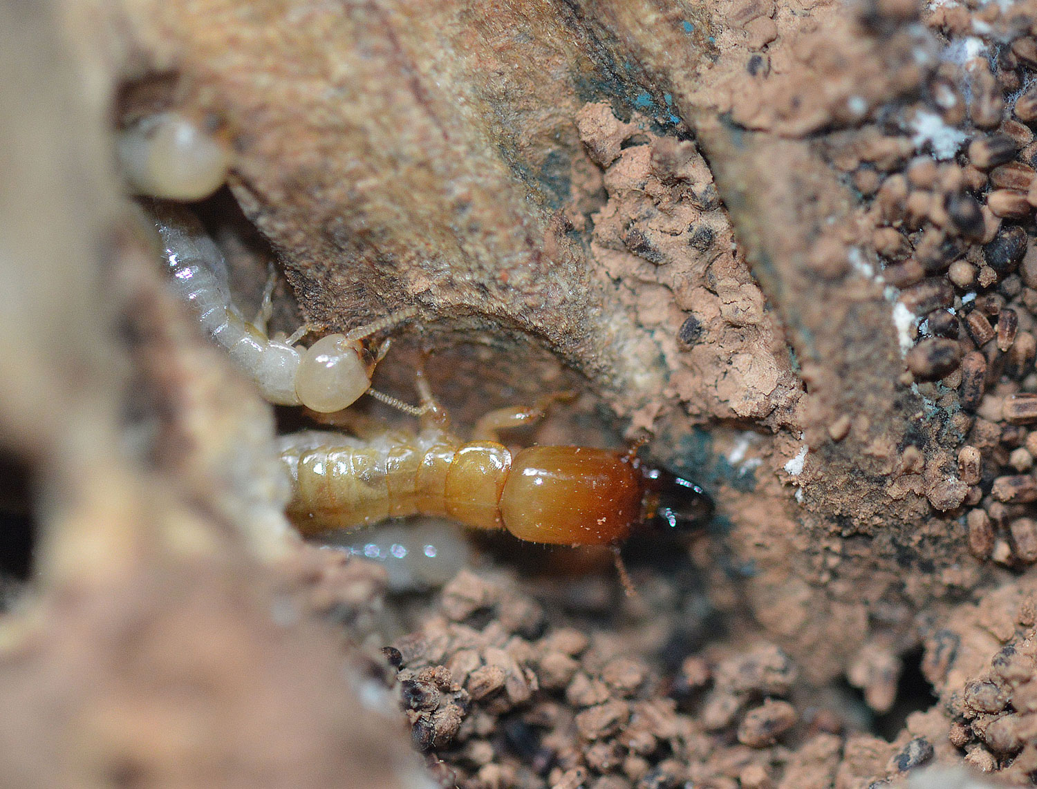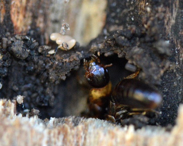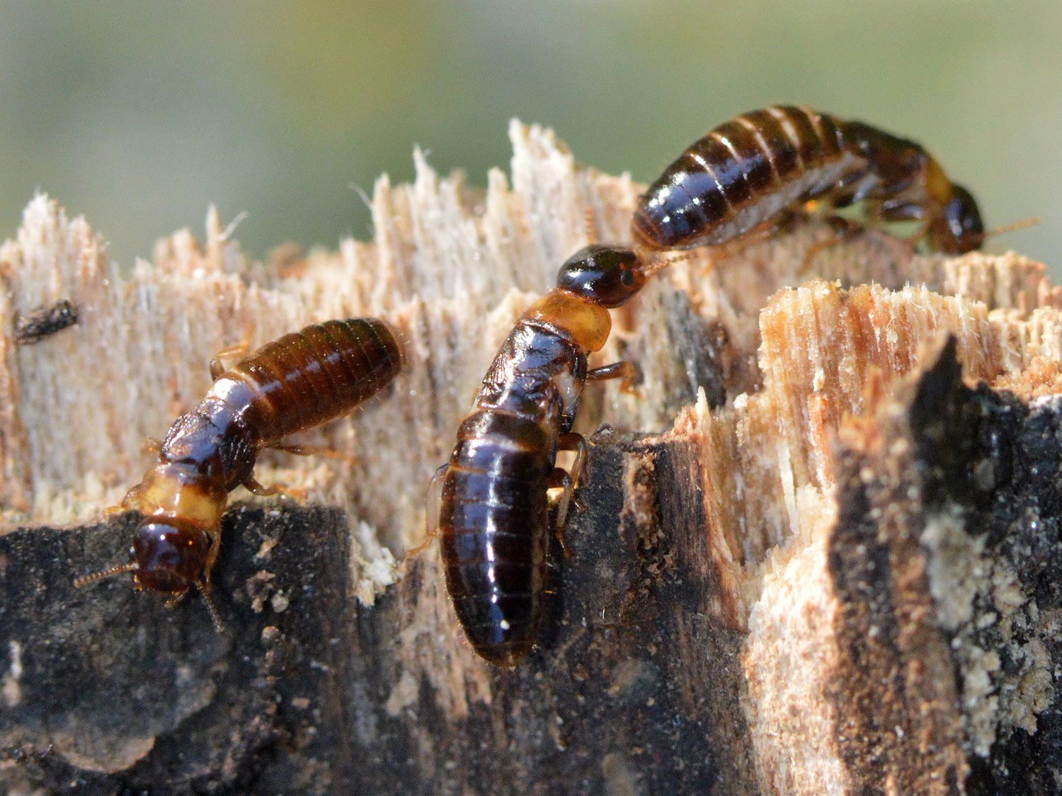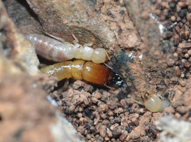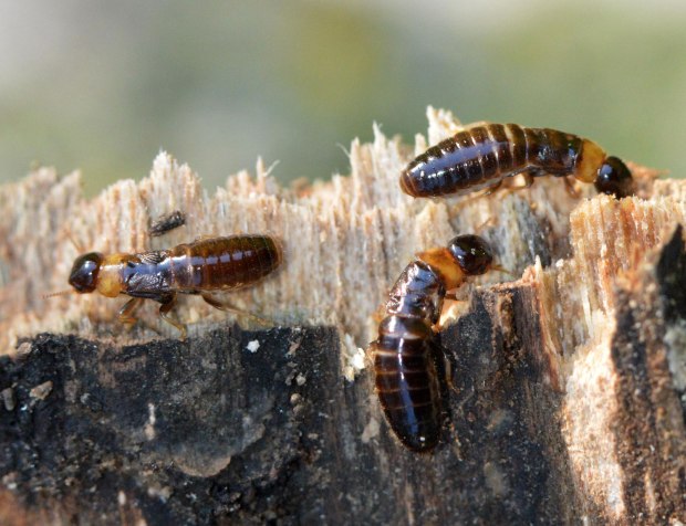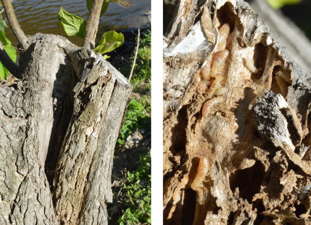 En la zona donde vivo la termita de la madera seca Kalotermes flavicollis tiene una incidencia importante sobre el arbolado urbano. Se trata de una especie mediterránea que forma pequeñas colonias y es muy plástica. Se adapta bien a vivir en cualquier trozo de madera muerta o en descomposición por pequeña que sea. Si en un árbol se observa un cancro, es muy probable que allí se encuentren activas o bien que por allí hayan pasado. Donde vivo, el árbol más abundante en las calles es el plátano de sombra, el cual es objeto de los ataques de las termitas. A medida que envejecen se pueden observar los numerosos daños que provocan.